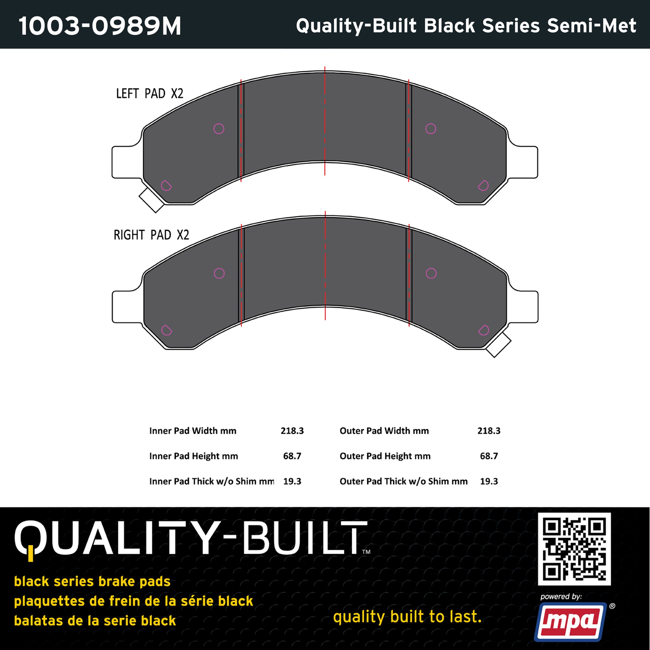 - Quality-Built Black Series Brake Pads are the ultimate in brake pad performance, delivering smooth, reliable stopping with zero noise and low dust. Application-specific friction formulas take the guesswork out of pad selection while providing even, predictable pedal feel and fade-free stopping power across a wide thermal range. Black Series friction compounds are engineered for optimized brake system performance and improved stopping power.