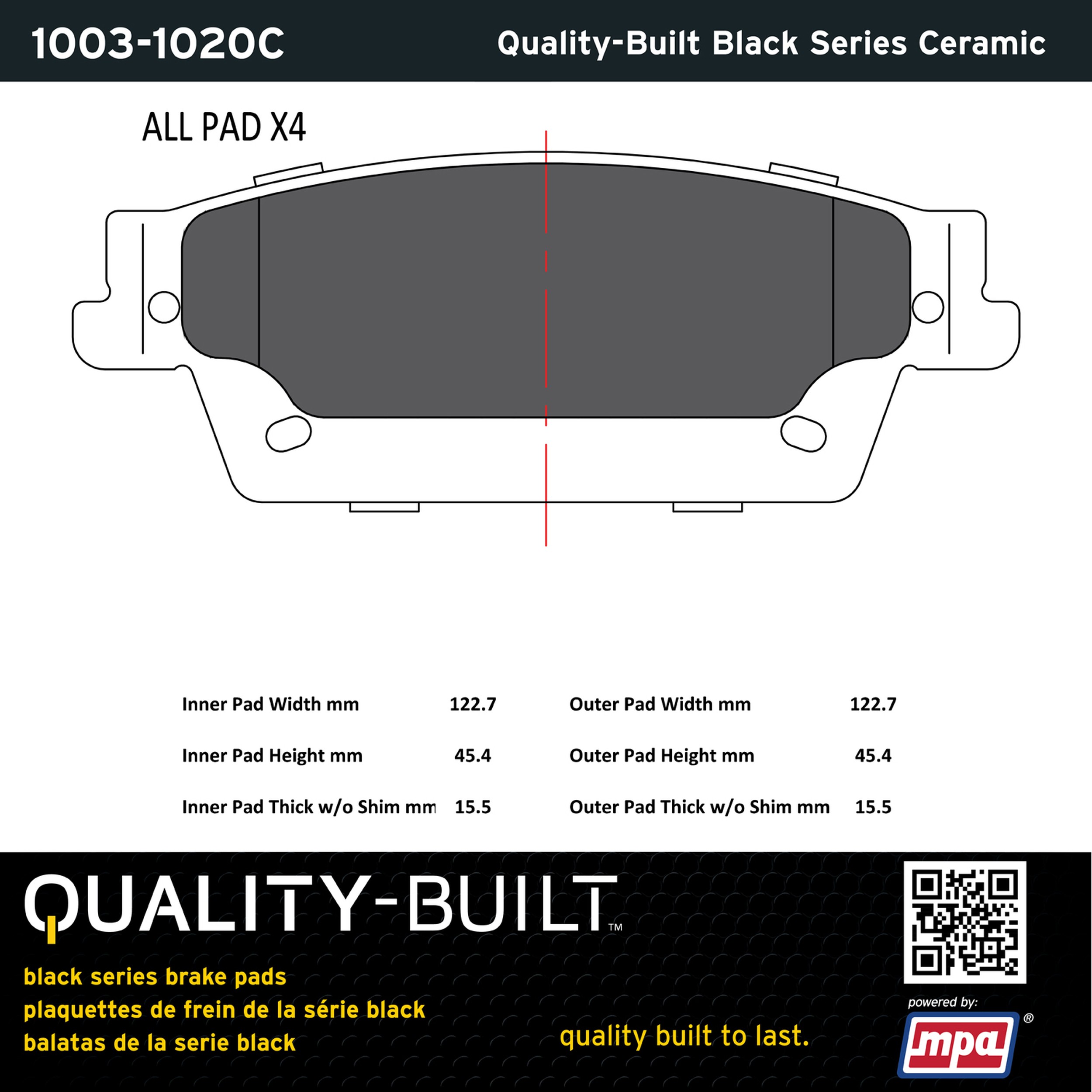 - Quality-Built Black Series Brake Pads are the ultimate in brake pad performance, delivering smooth, reliable stopping with zero noise and low dust. Application-specific friction formulas take the guesswork out of pad selection while providing even, predictable pedal feel and fade-free stopping power across a wide thermal range. Black Series friction compounds are engineered for optimized brake system performance and improved stopping power.