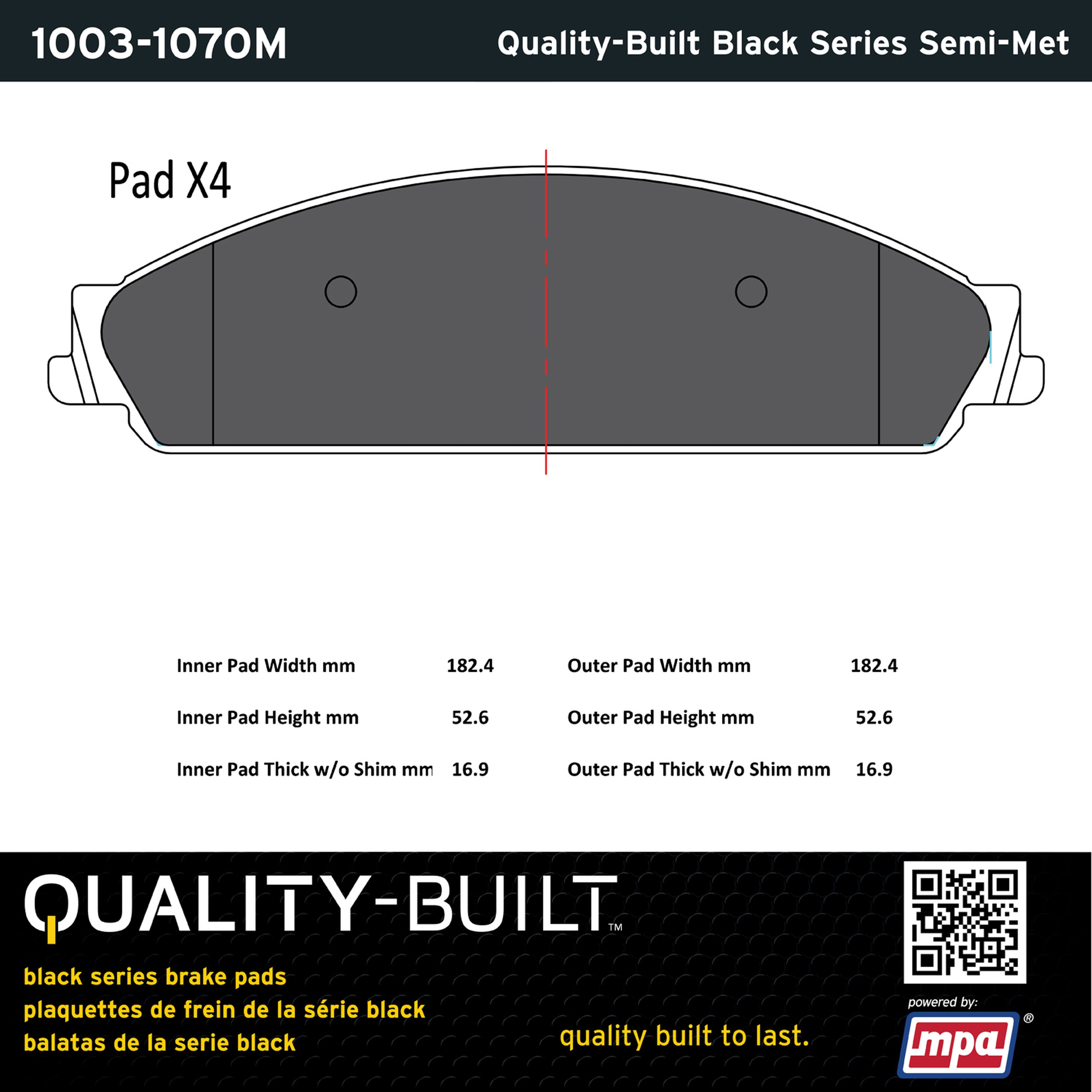 - Quality-Built Black Series Brake Pads are the ultimate in brake pad performance, delivering smooth, reliable stopping with zero noise and low dust. Application-specific friction formulas take the guesswork out of pad selection while providing even, predictable pedal feel and fade-free stopping power across a wide thermal range. Black Series friction compounds are engineered for optimized brake system performance and improved stopping power.