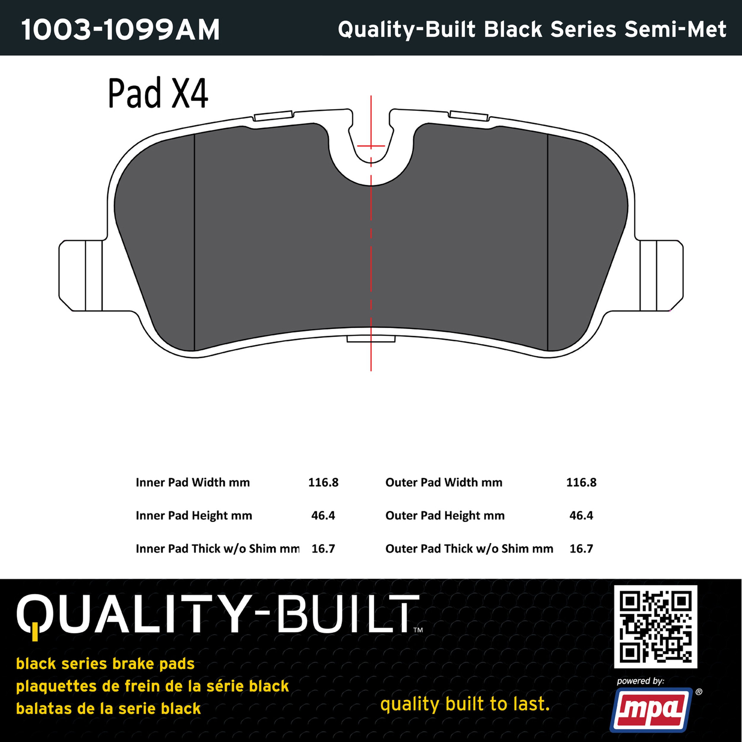 • Quality-Built Black Series Brake Pads are the ultimate in brake pad performance, delivering smooth, reliable stopping with zero noise and low dust. Application-specific friction formulas take the guesswork out of pad selection while providing even, predictable pedal feel and fade-free stopping power across a wide thermal range. Black Series friction compounds are engineered for optimized brake system performance and improved stopping power.