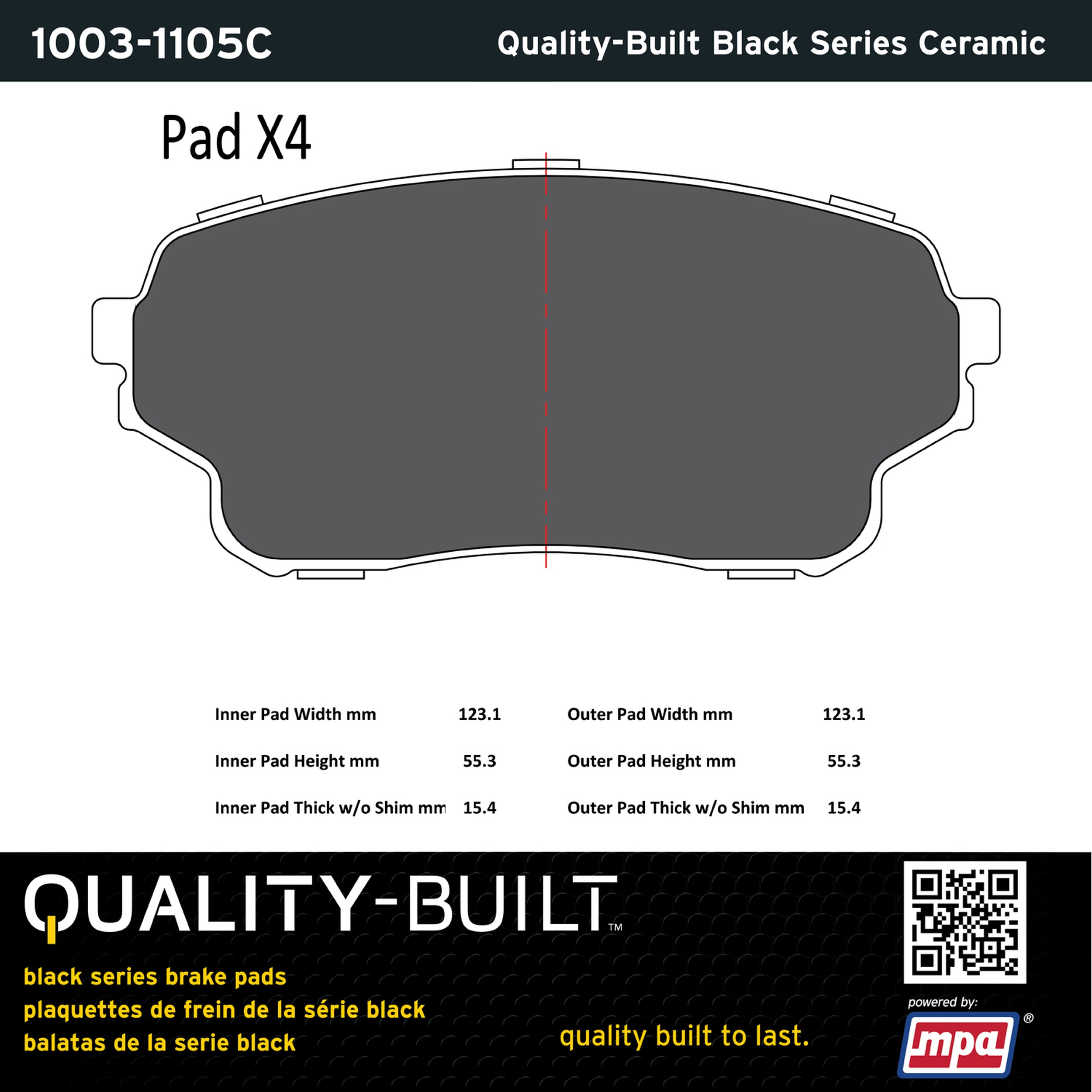 - Quality-Built Black Series Brake Pads are the ultimate in brake pad performance, delivering smooth, reliable stopping with zero noise and low dust. Application-specific friction formulas take the guesswork out of pad selection while providing even, predictable pedal feel and fade-free stopping power across a wide thermal range. Black Series friction compounds are engineered for optimized brake system performance and improved stopping power.