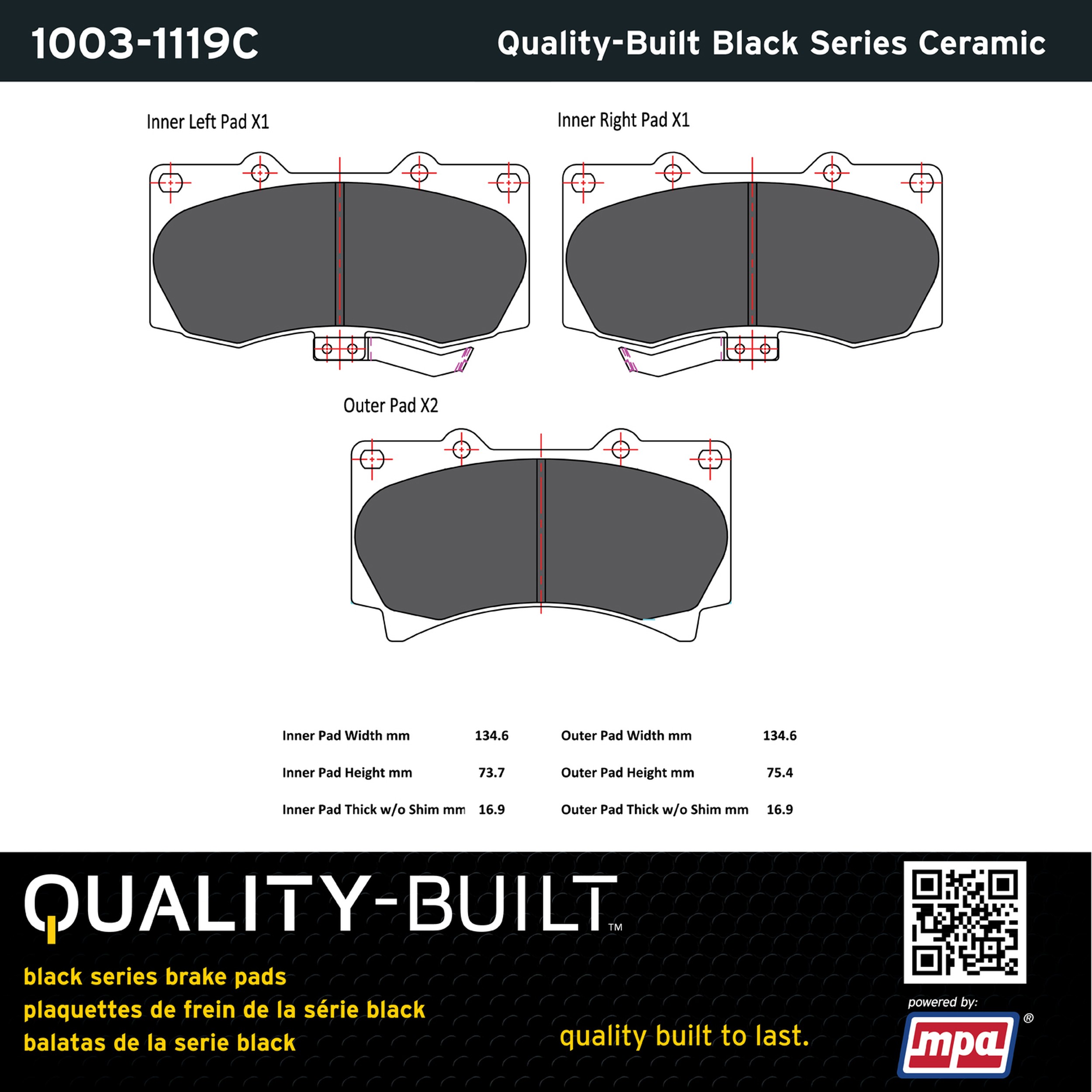 - Quality-Built Black Series Brake Pads are the ultimate in brake pad performance, delivering smooth, reliable stopping with zero noise and low dust. Application-specific friction formulas take the guesswork out of pad selection while providing even, predictable pedal feel and fade-free stopping power across a wide thermal range. Black Series friction compounds are engineered for optimized brake system performance and improved stopping power.