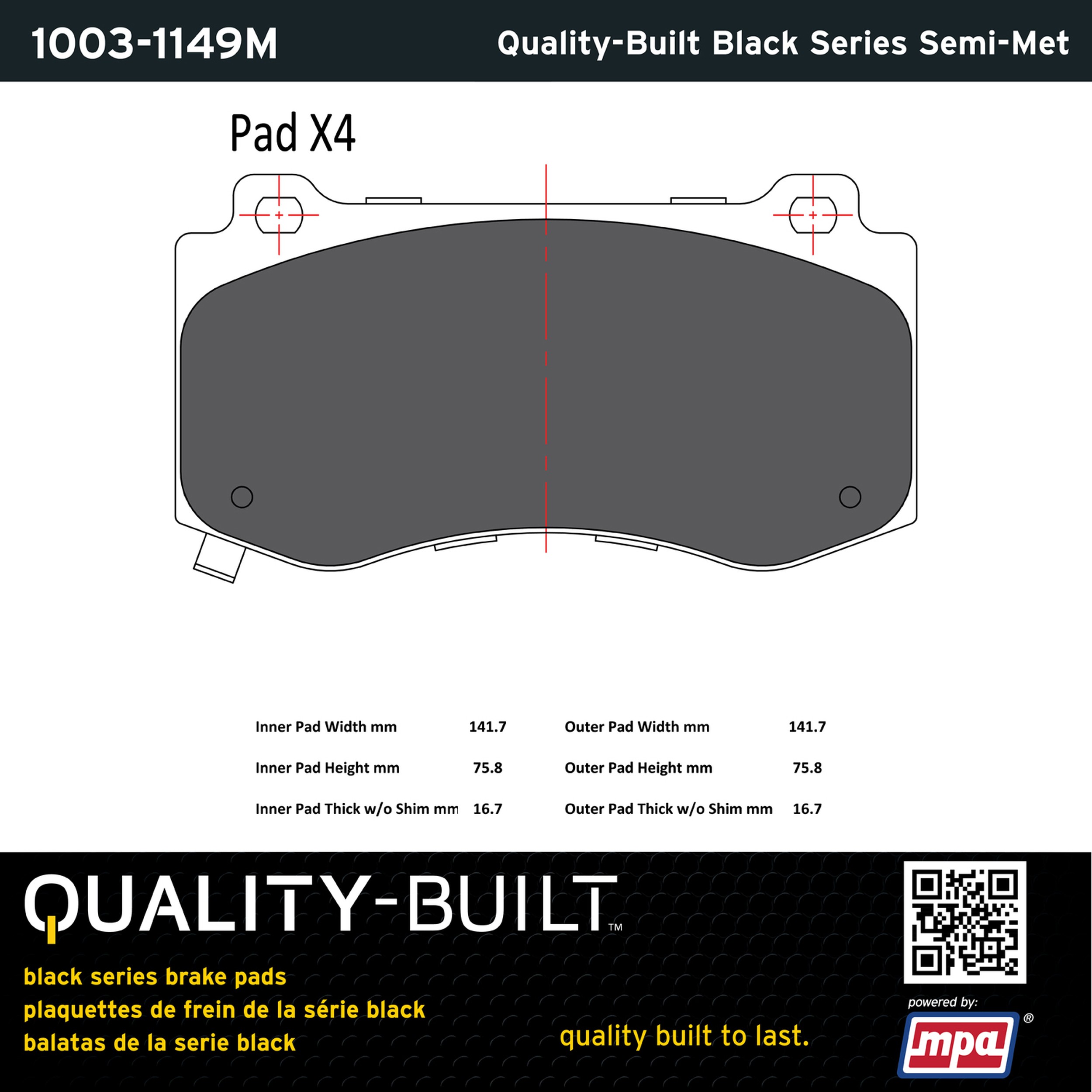 - Quality-Built Black Series Brake Pads are the ultimate in brake pad performance, delivering smooth, reliable stopping with zero noise and low dust. Application-specific friction formulas take the guesswork out of pad selection while providing even, predictable pedal feel and fade-free stopping power across a wide thermal range. Black Series friction compounds are engineered for optimized brake system performance and improved stopping power.