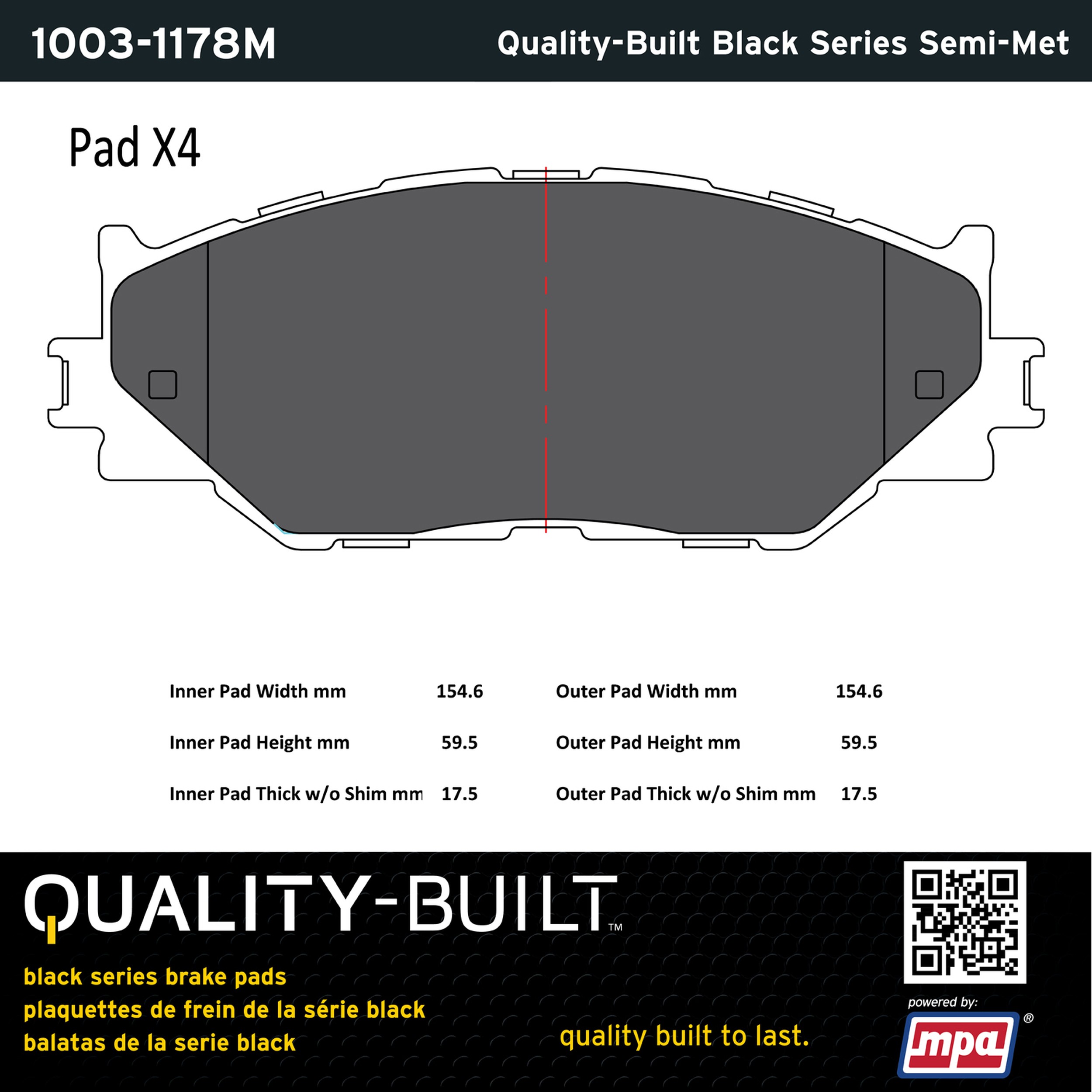 - Quality-Built Black Series Brake Pads are the ultimate in brake pad performance, delivering smooth, reliable stopping with zero noise and low dust. Application-specific friction formulas take the guesswork out of pad selection while providing even, predictable pedal feel and fade-free stopping power across a wide thermal range. Black Series friction compounds are engineered for optimized brake system performance and improved stopping power.
