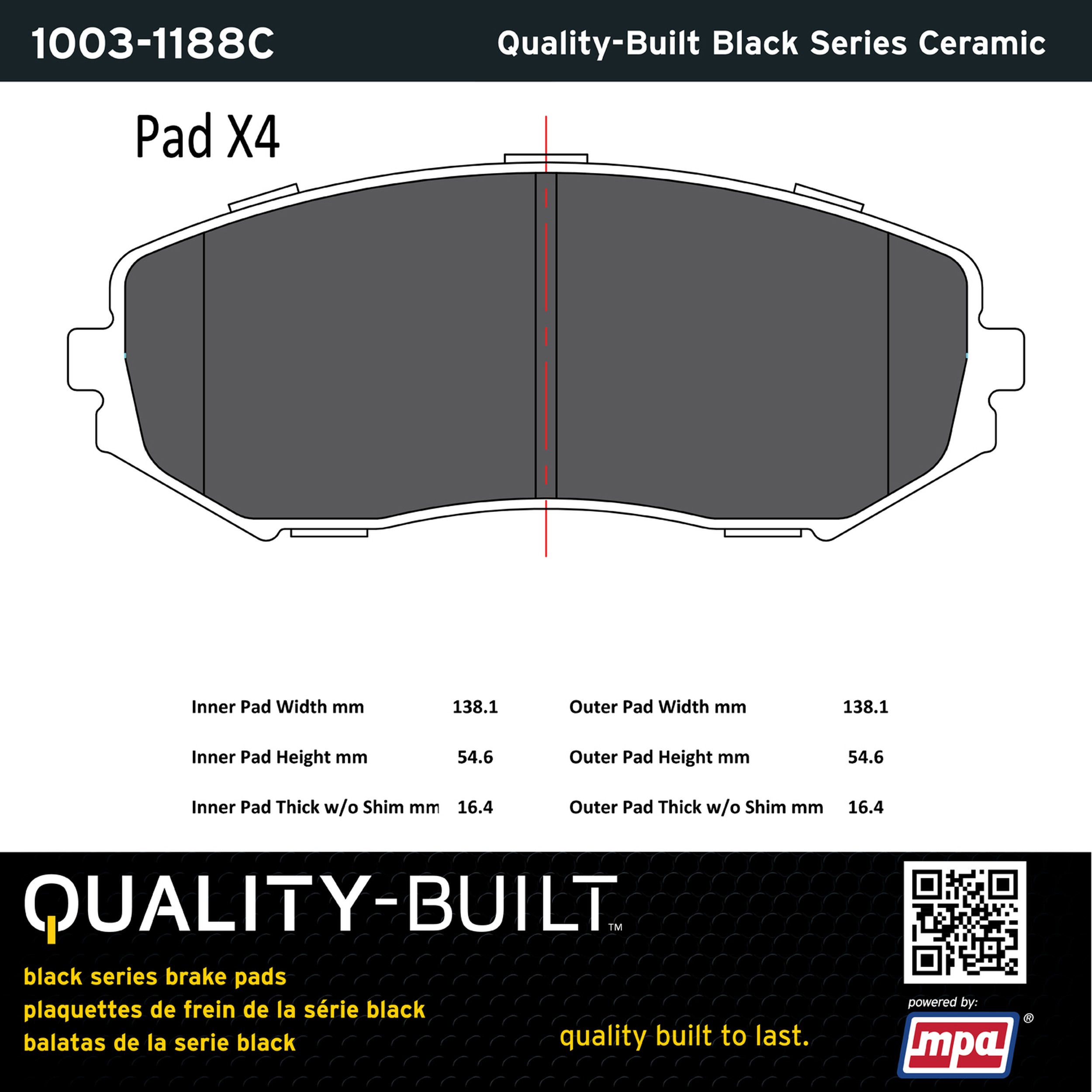 - Quality-Built Black Series Brake Pads are the ultimate in brake pad performance, delivering smooth, reliable stopping with zero noise and low dust. Application-specific friction formulas take the guesswork out of pad selection while providing even, predictable pedal feel and fade-free stopping power across a wide thermal range. Black Series friction compounds are engineered for optimized brake system performance and improved stopping power.