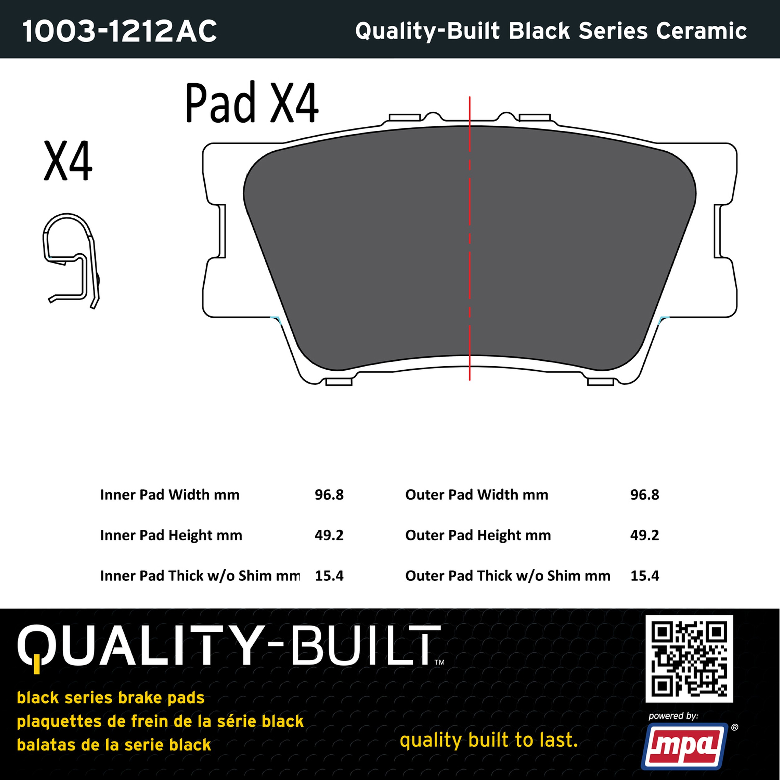 - Quality-Built Black Series Ceramic Brake Pads w/ Hardware