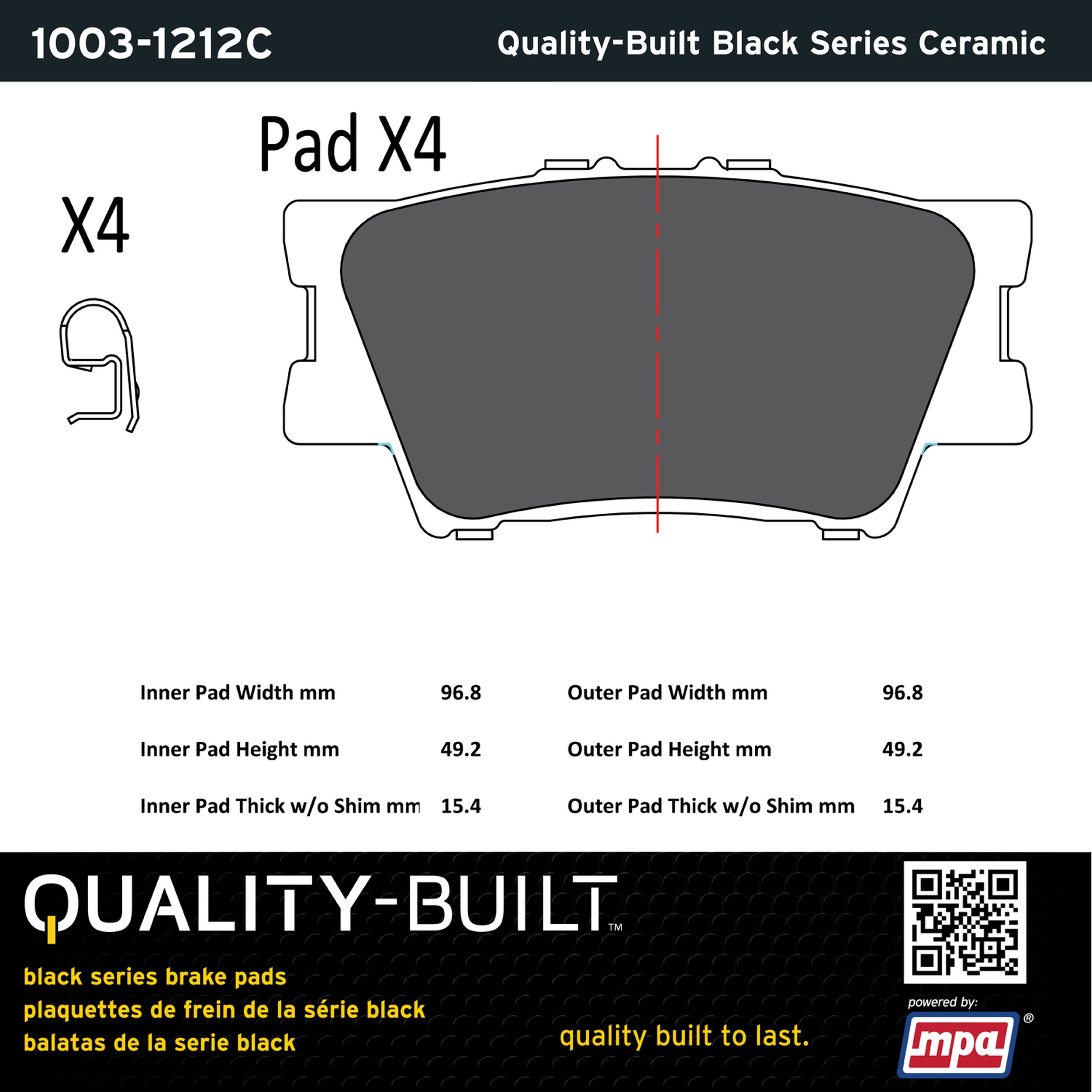 - Quality-Built Black Series Brake Pads are the ultimate in brake pad performance, delivering smooth, reliable stopping with zero noise and low dust. Application-specific friction formulas take the guesswork out of pad selection while providing even, predictable pedal feel and fade-free stopping power across a wide thermal range. Black Series friction compounds are engineered for optimized brake system performance and improved stopping power.