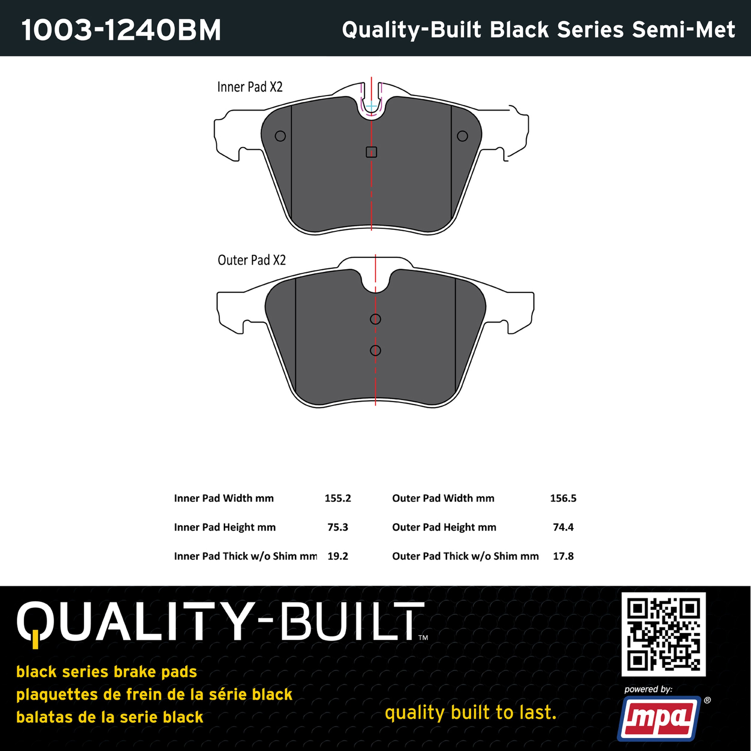 - Quality-Built Black Series Brake Pads are the ultimate in brake pad performance, delivering smooth, reliable stopping with zero noise and low dust. Application-specific friction formulas take the guesswork out of pad selection while providing even, predictable pedal feel and fade-free stopping power across a wide thermal range. Black Series friction compounds are engineered for optimized brake system performance and improved stopping power.