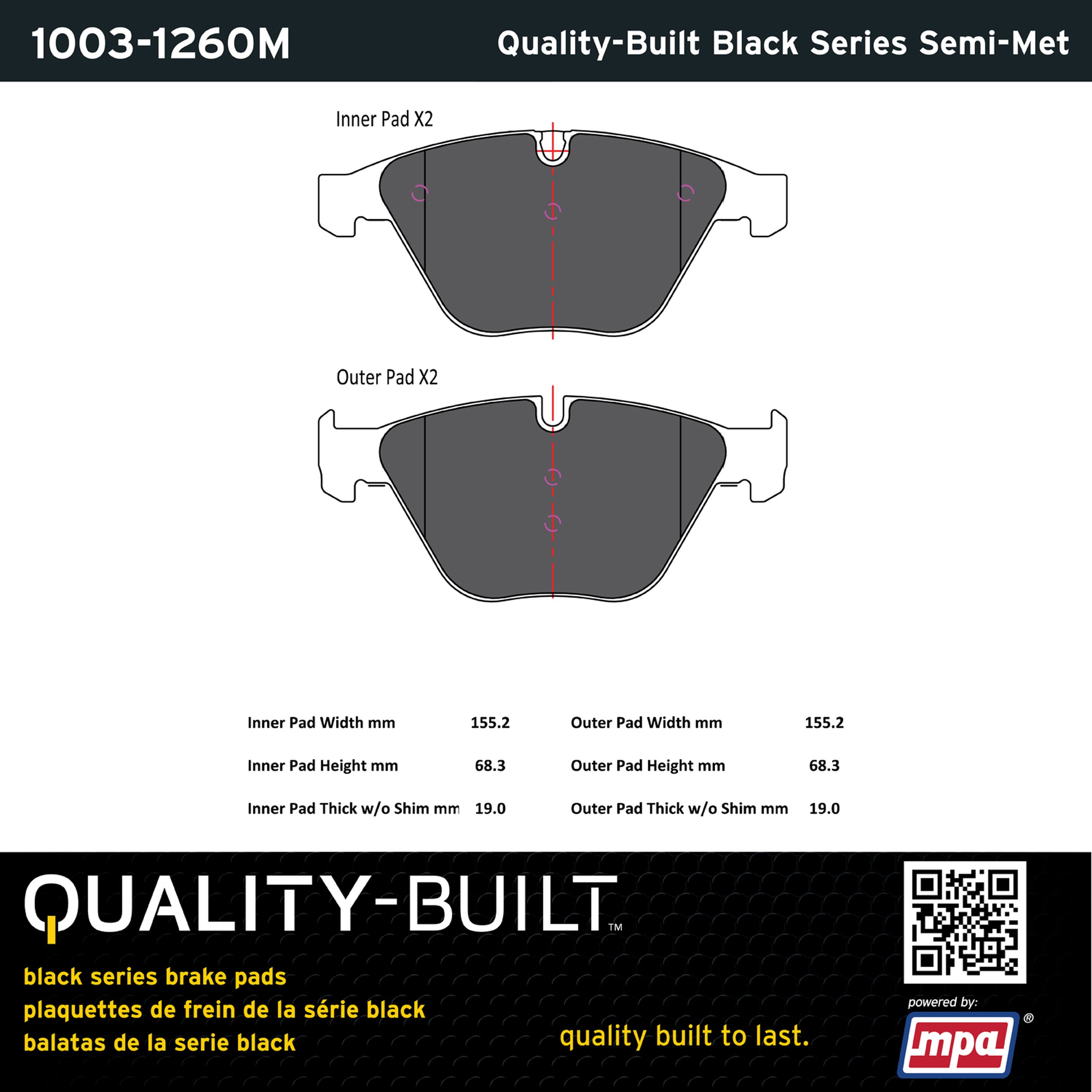 - Quality-Built Black Series Brake Pads are the ultimate in brake pad performance, delivering smooth, reliable stopping with zero noise and low dust. Application-specific friction formulas take the guesswork out of pad selection while providing even, predictable pedal feel and fade-free stopping power across a wide thermal range. Black Series friction compounds are engineered for optimized brake system performance and improved stopping power.
