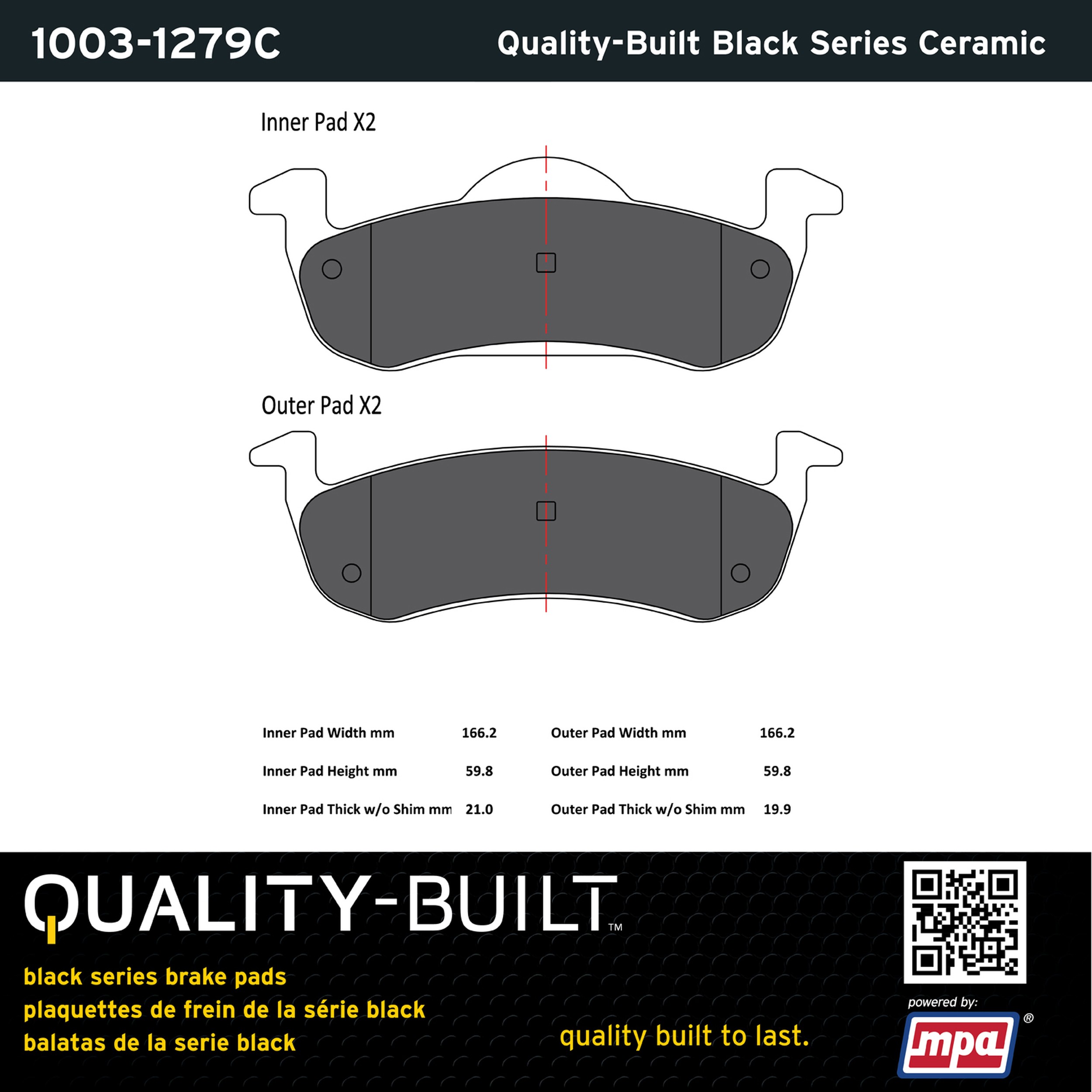 - Quality-Built Black Series Brake Pads are the ultimate in brake pad performance, delivering smooth, reliable stopping with zero noise and low dust. Application-specific friction formulas take the guesswork out of pad selection while providing even, predictable pedal feel and fade-free stopping power across a wide thermal range. Black Series friction compounds are engineered for optimized brake system performance and improved stopping power.