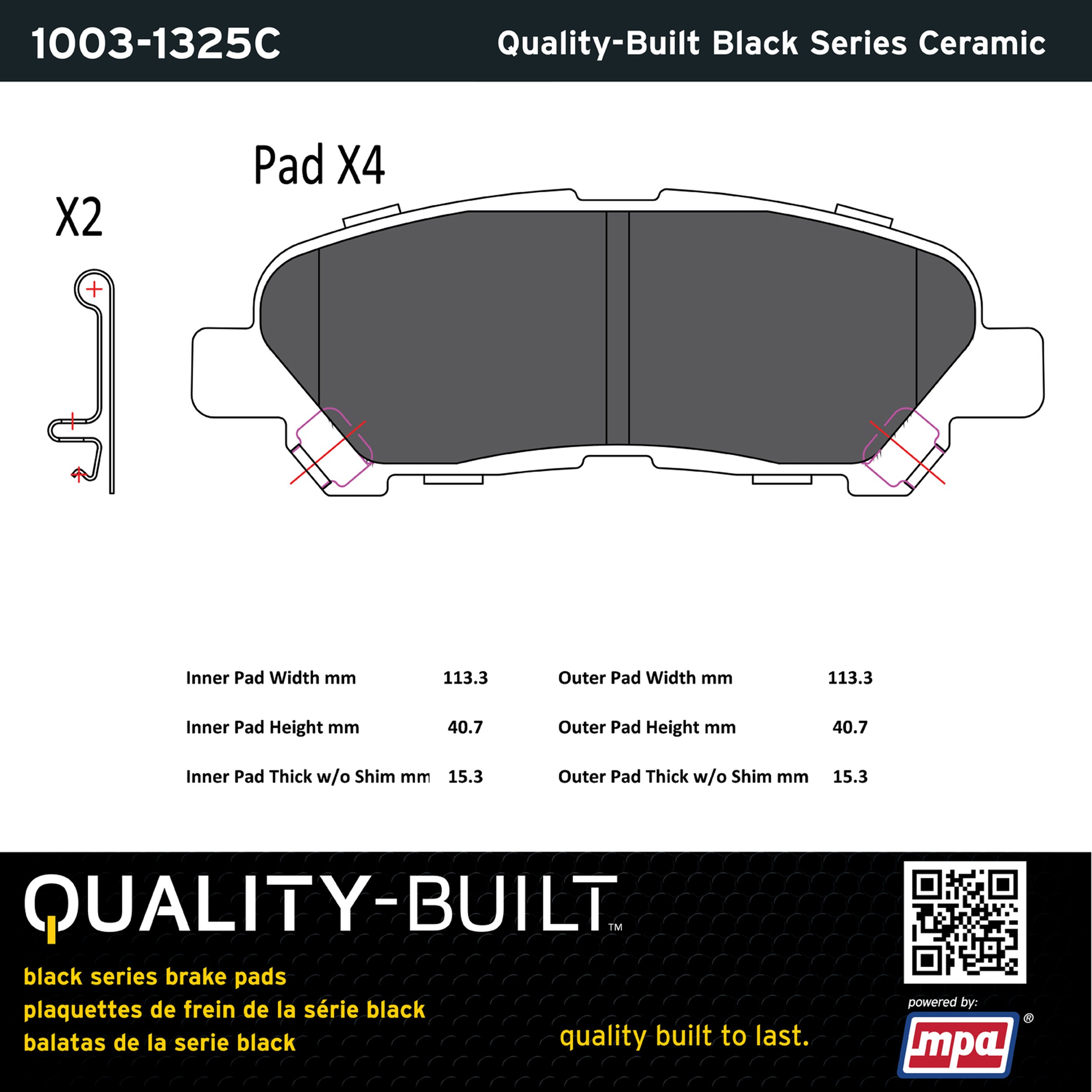 - Quality-Built Black Series Brake Pads are the ultimate in brake pad performance, delivering smooth, reliable stopping with zero noise and low dust. Application-specific friction formulas take the guesswork out of pad selection while providing even, predictable pedal feel and fade-free stopping power across a wide thermal range. Black Series friction compounds are engineered for optimized brake system performance and improved stopping power.
