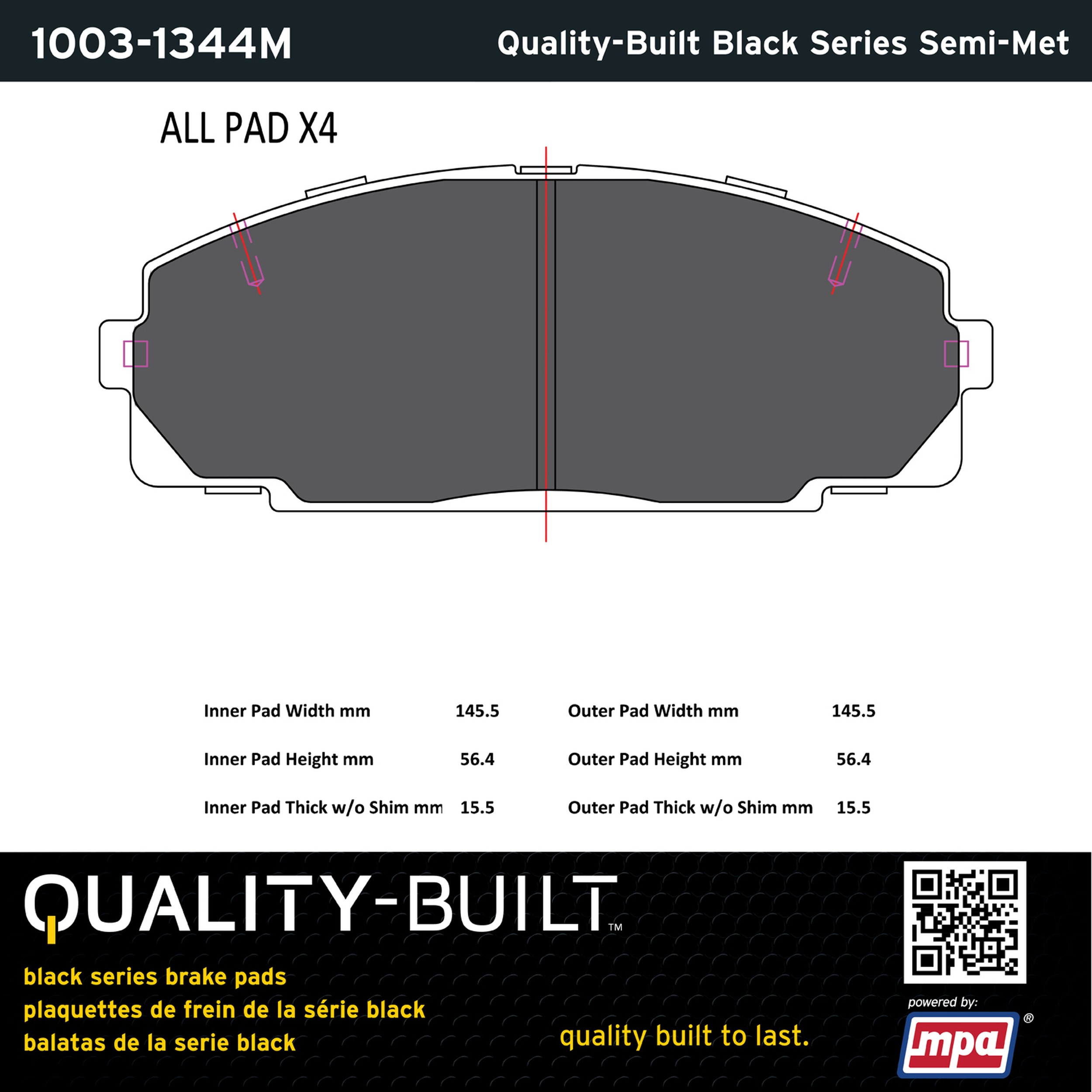 - Quality-Built Black Series Semi-Metallic Brake Pads
