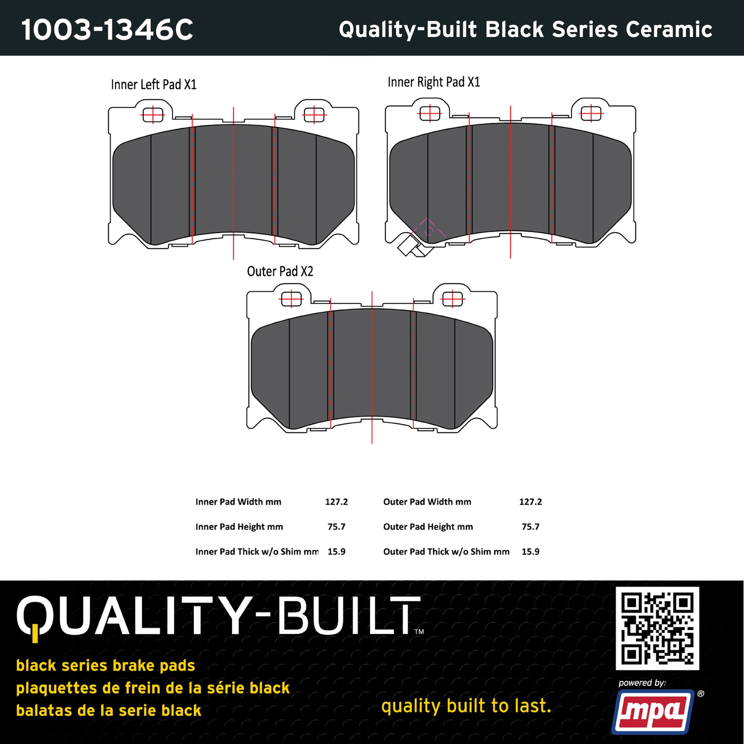 - Quality-Built Black Series Brake Pads are the ultimate in brake pad performance, delivering smooth, reliable stopping with zero noise and low dust. Application-specific friction formulas take the guesswork out of pad selection while providing even, predictable pedal feel and fade-free stopping power across a wide thermal range. Black Series friction compounds are engineered for optimized brake system performance and improved stopping power.