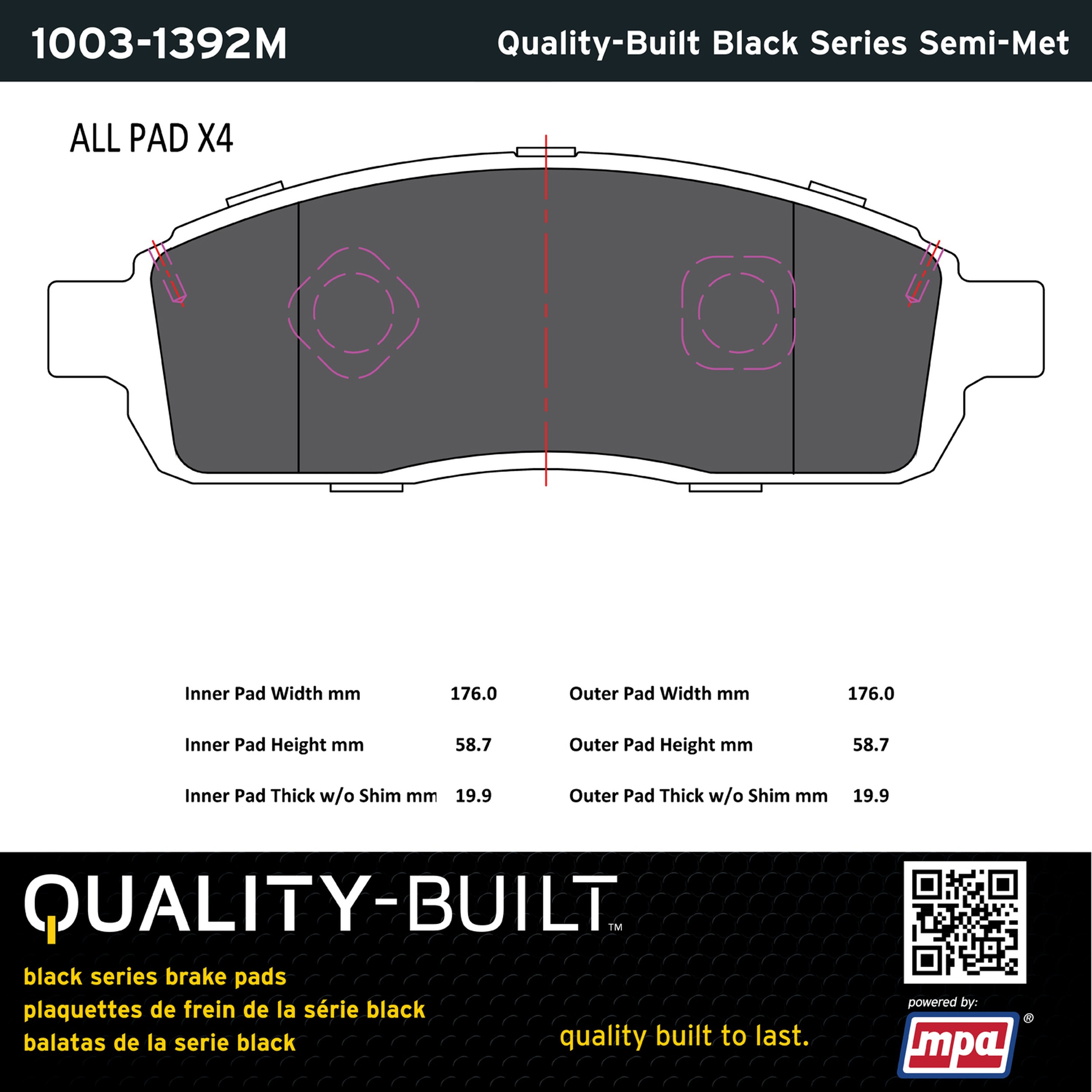 - Quality-Built Black Series Brake Pads are the ultimate in brake pad performance, delivering smooth, reliable stopping with zero noise and low dust. Application-specific friction formulas take the guesswork out of pad selection while providing even, predictable pedal feel and fade-free stopping power across a wide thermal range. Black Series friction compounds are engineered for optimized brake system performance and improved stopping power.