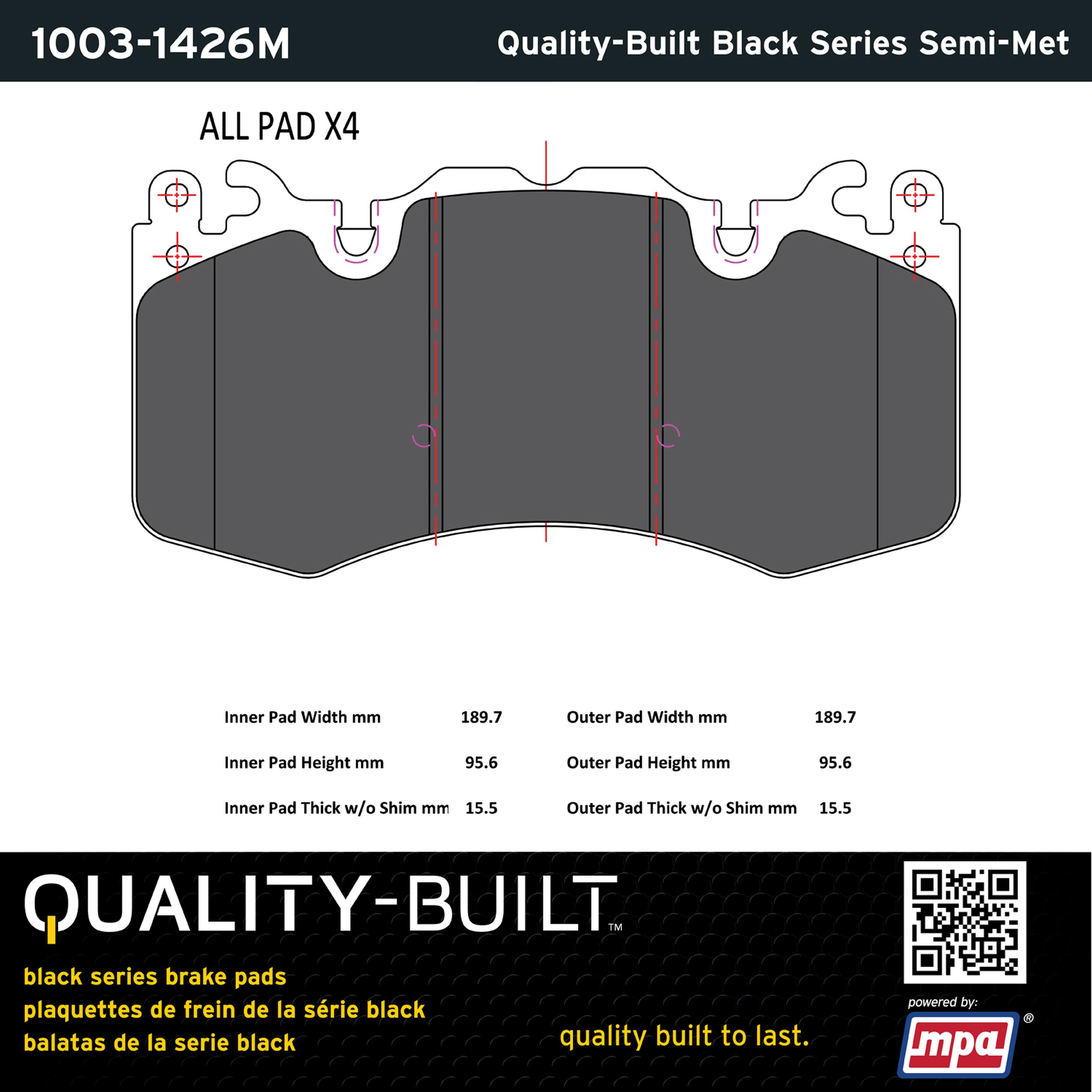 - Quality-Built Black Series Brake Pads are the ultimate in brake pad performance, delivering smooth, reliable stopping with zero noise and low dust. Application-specific friction formulas take the guesswork out of pad selection while providing even, predictable pedal feel and fade-free stopping power across a wide thermal range. Black Series friction compounds are engineered for optimized brake system performance and improved stopping power.