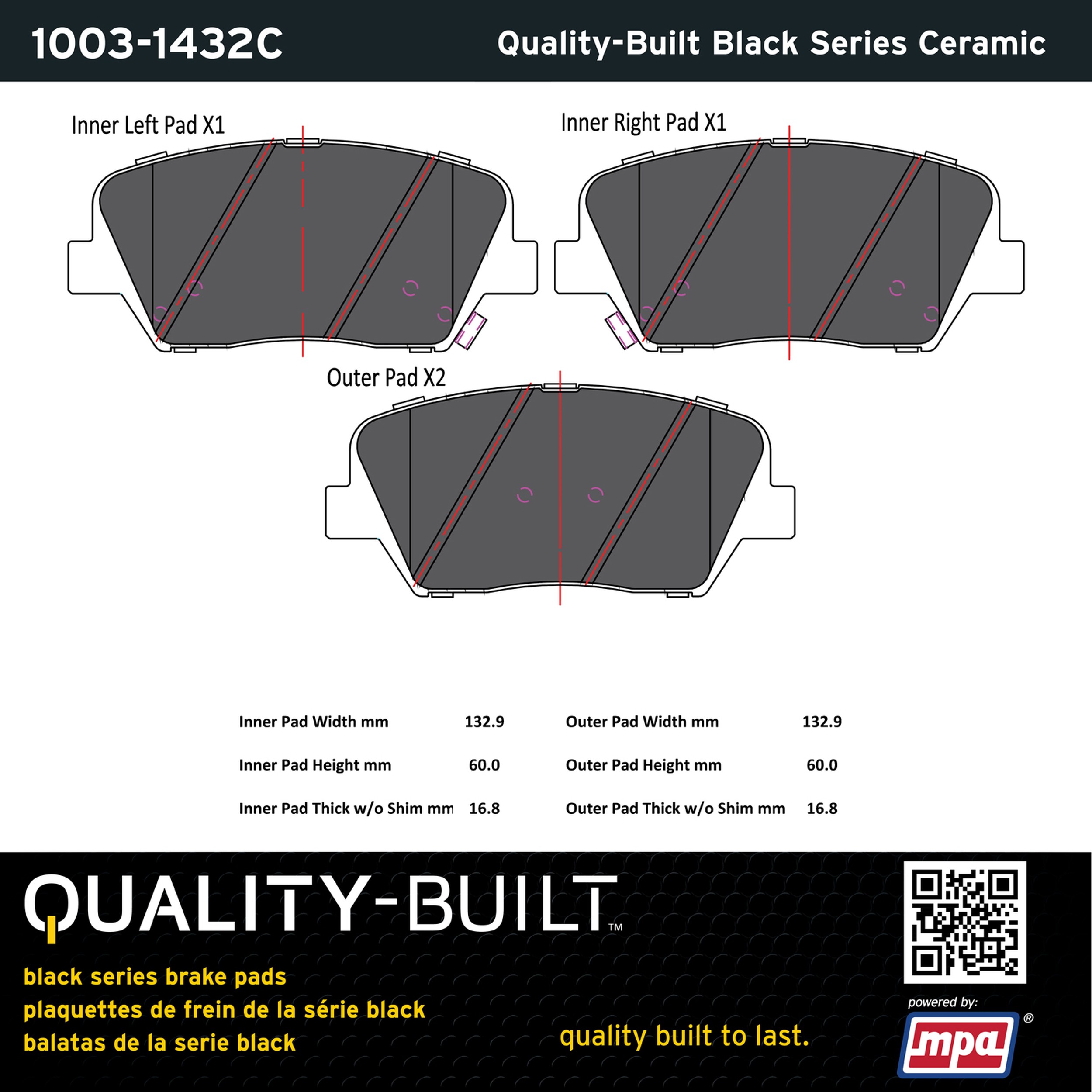 - Quality-Built Black Series Brake Pads are the ultimate in brake pad performance, delivering smooth, reliable stopping with zero noise and low dust. Application-specific friction formulas take the guesswork out of pad selection while providing even, predictable pedal feel and fade-free stopping power across a wide thermal range. Black Series friction compounds are engineered for optimized brake system performance and improved stopping power.