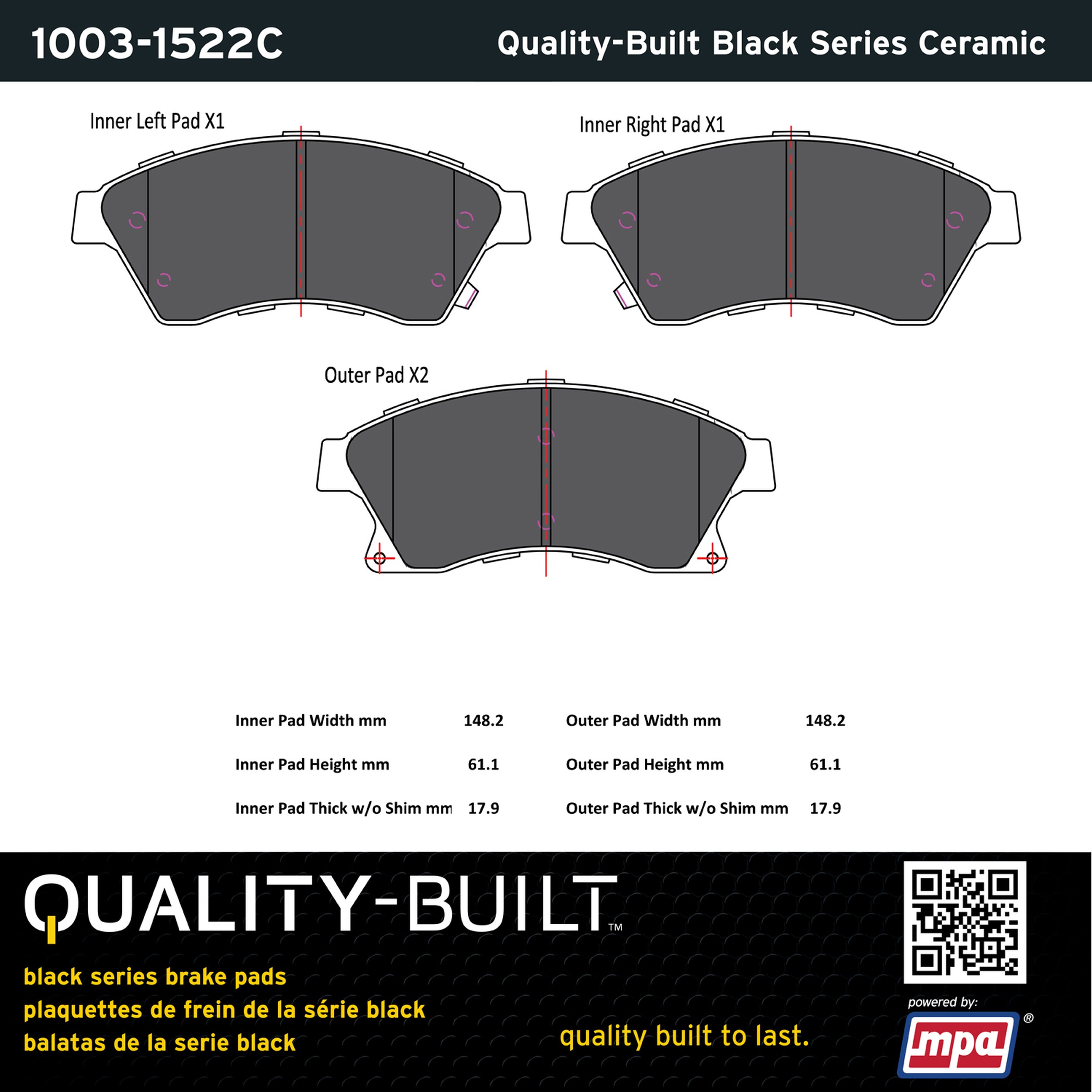- Quality-Built Black Series Brake Pads are the ultimate in brake pad performance, delivering smooth, reliable stopping with zero noise and low dust. Application-specific friction formulas take the guesswork out of pad selection while providing even, predictable pedal feel and fade-free stopping power across a wide thermal range. Black Series friction compounds are engineered for optimized brake system performance and improved stopping power.