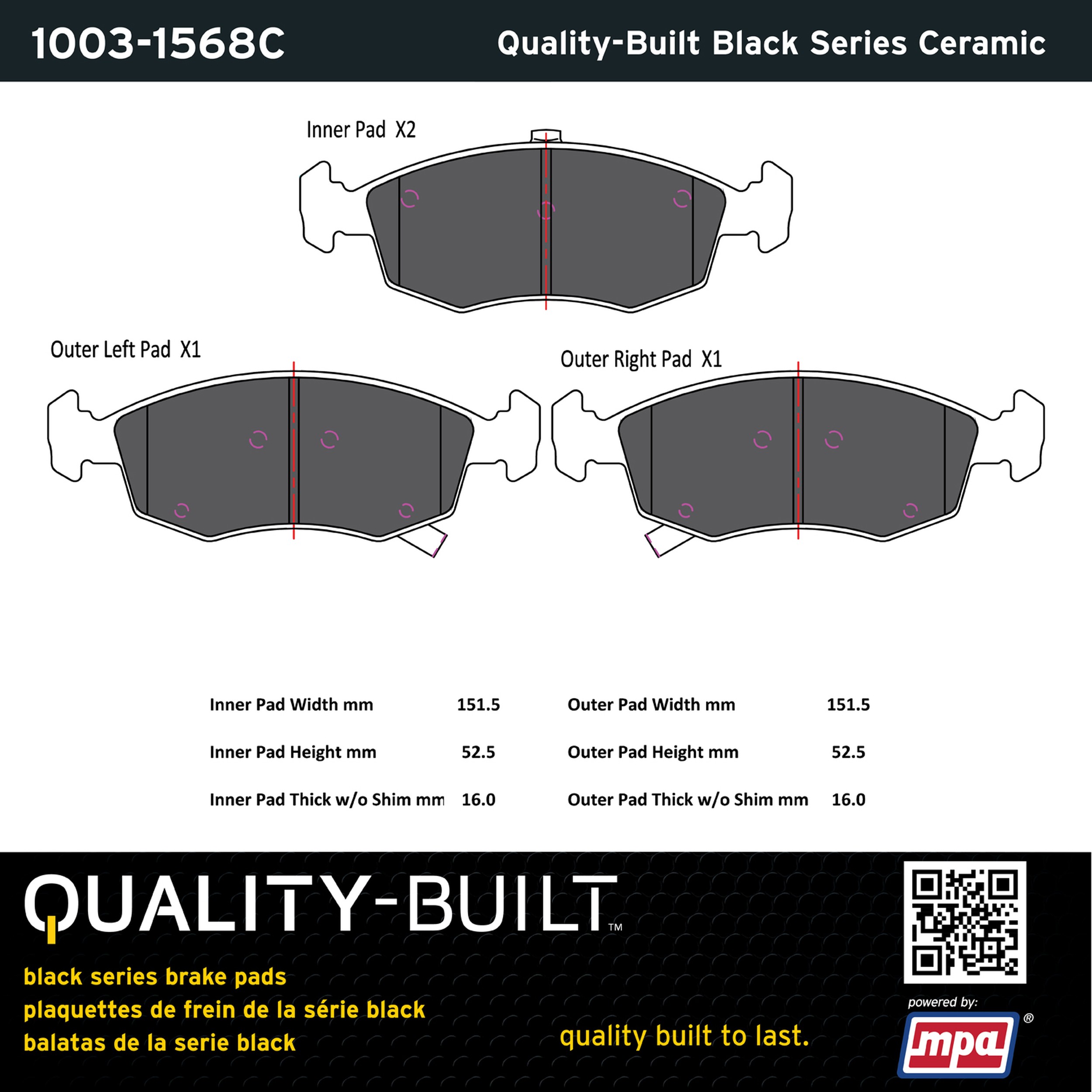 - Quality-Built Black Series Brake Pads are the ultimate in brake pad performance, delivering smooth, reliable stopping with zero noise and low dust. Application-specific friction formulas take the guesswork out of pad selection while providing even, predictable pedal feel and fade-free stopping power across a wide thermal range. Black Series friction compounds are engineered for optimized brake system performance and improved stopping power.