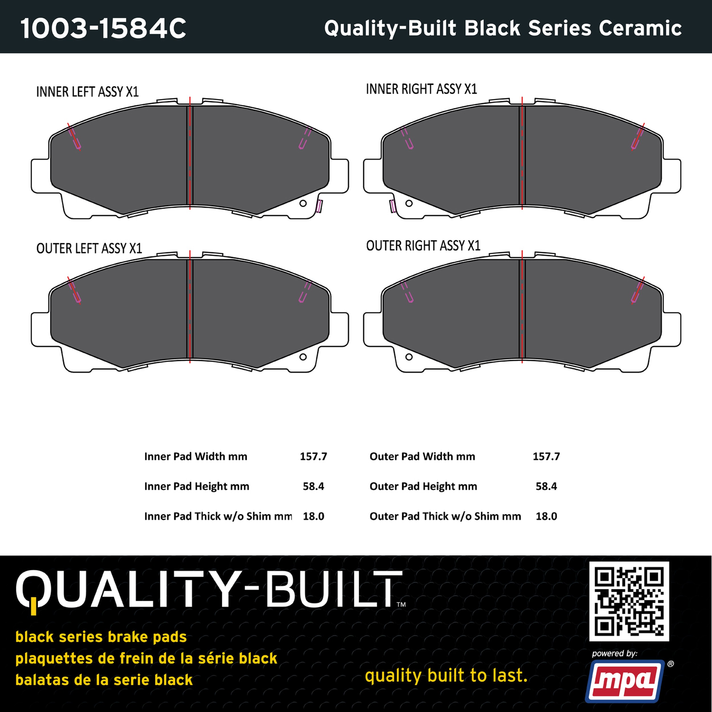 - Quality-Built Black Series Ceramic Brake Pads w/ Hardware