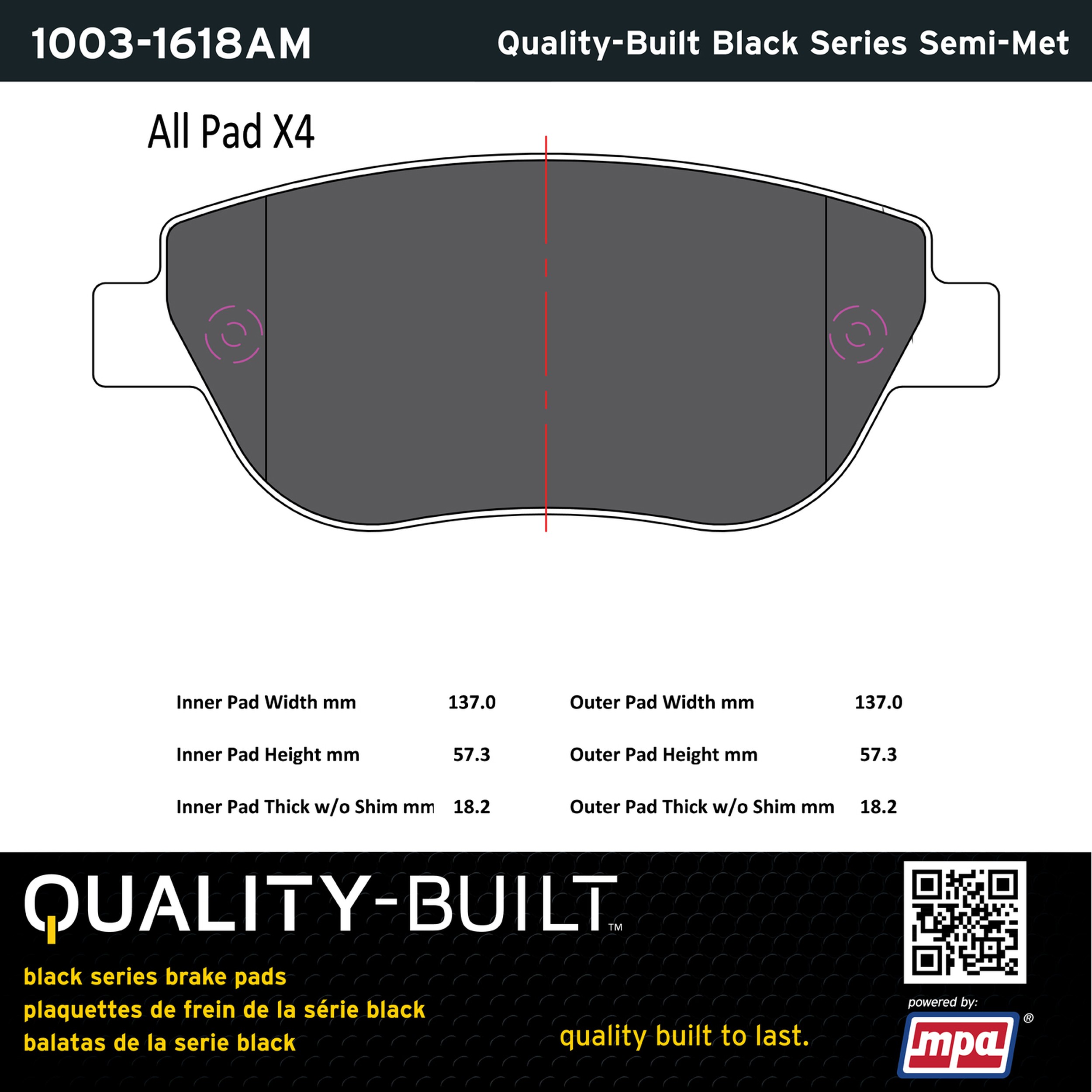 - Quality-Built Black Series Brake Pads are the ultimate in brake pad performance, delivering smooth, reliable stopping with zero noise and low dust. Application-specific friction formulas take the guesswork out of pad selection while providing even, predictable pedal feel and fade-free stopping power across a wide thermal range. Black Series friction compounds are engineered for optimized brake system performance and improved stopping power.