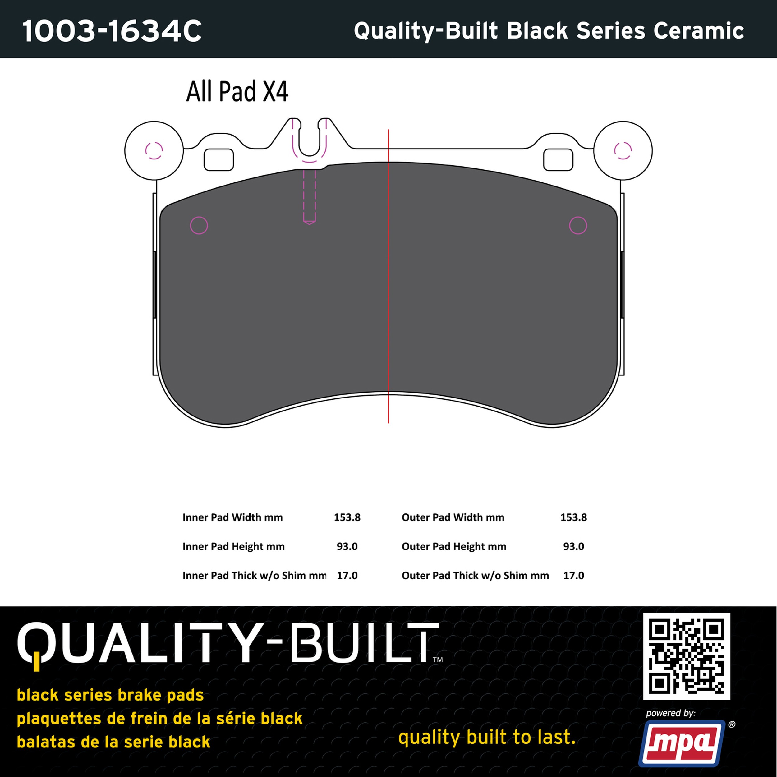 - Quality-Built Black Series Brake Pads are the ultimate in brake pad performance, delivering smooth, reliable stopping with zero noise and low dust. Application-specific friction formulas take the guesswork out of pad selection while providing even, predictable pedal feel and fade-free stopping power across a wide thermal range. Black Series friction compounds are engineered for optimized brake system performance and improved stopping power.