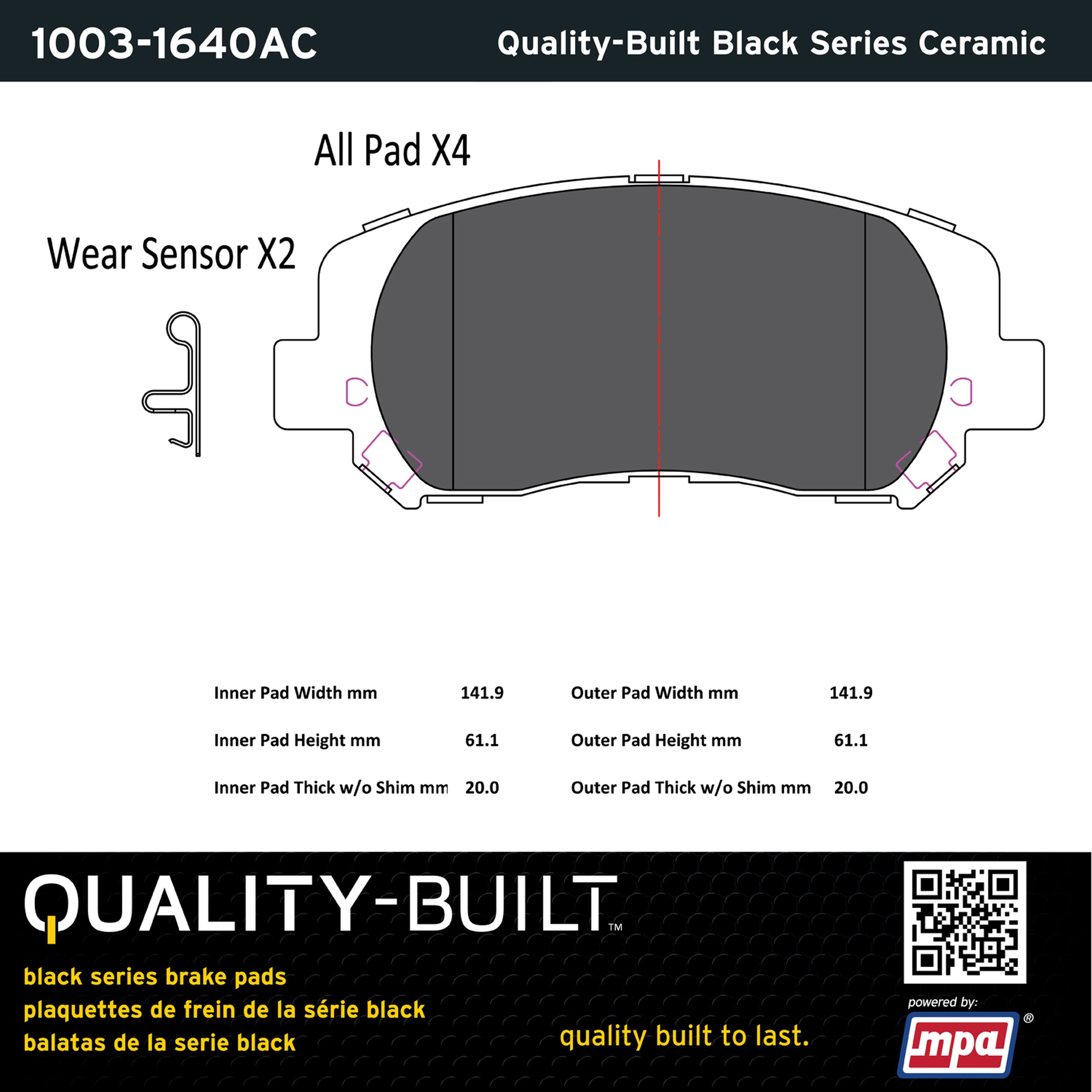 - Quality-Built Black Series Brake Pads are the ultimate in brake pad performance, delivering smooth, reliable stopping with zero noise and low dust. Application-specific friction formulas take the guesswork out of pad selection while providing even, predictable pedal feel and fade-free stopping power across a wide thermal range. Black Series friction compounds are engineered for optimized brake system performance and improved stopping power.