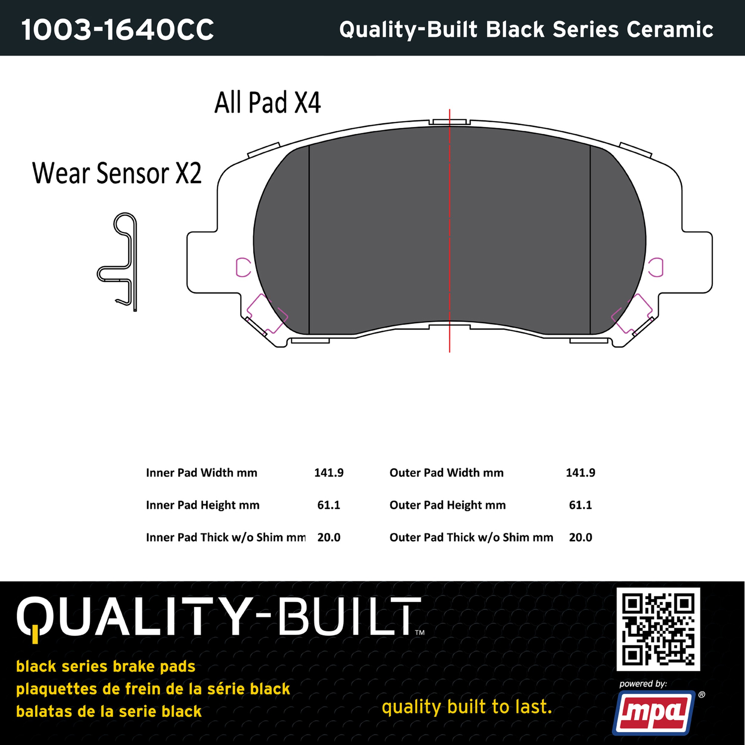- Quality-Built Black Series Brake Pads are the ultimate in brake pad performance, delivering smooth, reliable stopping with zero noise and low dust. Application-specific friction formulas take the guesswork out of pad selection while providing even, predictable pedal feel and fade-free stopping power across a wide thermal range. Black Series friction compounds are engineered for optimized brake system performance and improved stopping power.