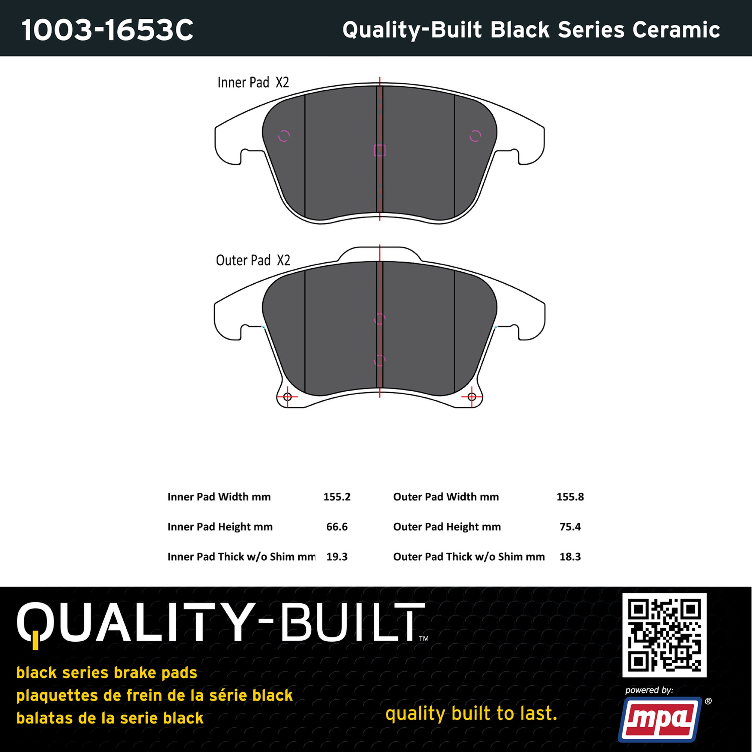 - Quality-Built Black Series Brake Pads are the ultimate in brake pad performance, delivering smooth, reliable stopping with zero noise and low dust. Application-specific friction formulas take the guesswork out of pad selection while providing even, predictable pedal feel and fade-free stopping power across a wide thermal range. Black Series friction compounds are engineered for optimized brake system performance and improved stopping power.