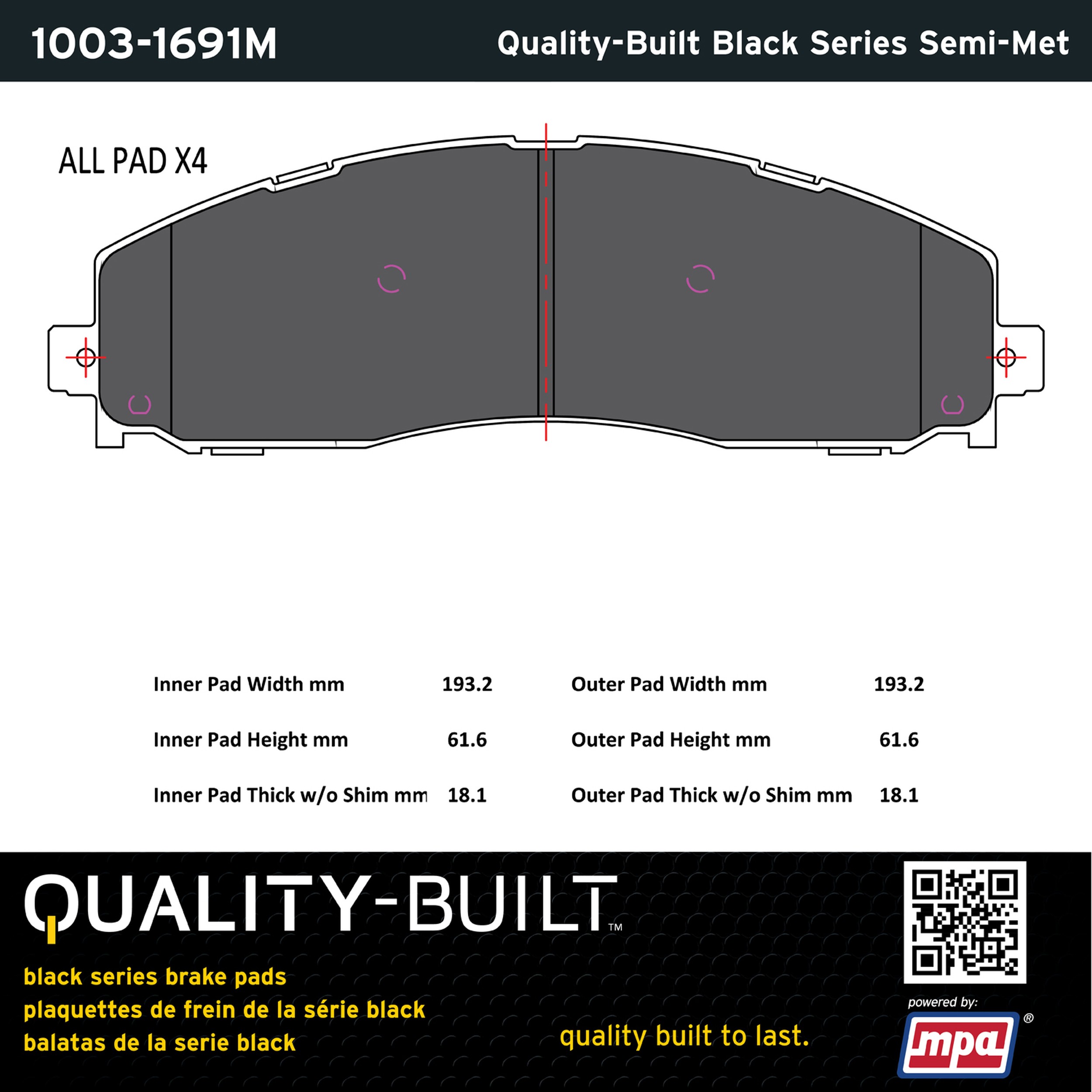 - Quality-Built Black Series Brake Pads are the ultimate in brake pad performance, delivering smooth, reliable stopping with zero noise and low dust. Application-specific friction formulas take the guesswork out of pad selection while providing even, predictable pedal feel and fade-free stopping power across a wide thermal range. Black Series friction compounds are engineered for optimized brake system performance and improved stopping power.