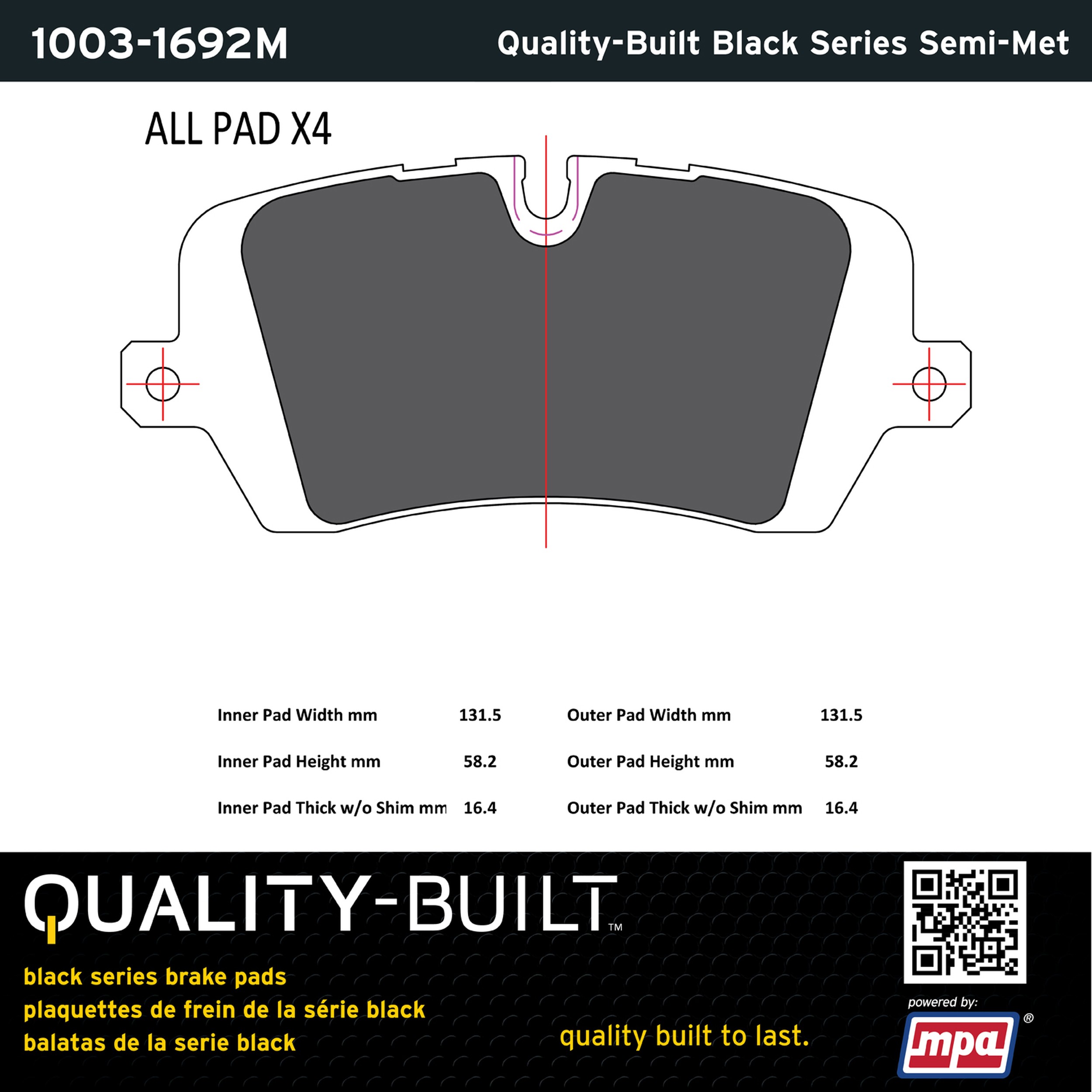- Quality-Built Black Series Brake Pads are the ultimate in brake pad performance, delivering smooth, reliable stopping with zero noise and low dust. Application-specific friction formulas take the guesswork out of pad selection while providing even, predictable pedal feel and fade-free stopping power across a wide thermal range. Black Series friction compounds are engineered for optimized brake system performance and improved stopping power.