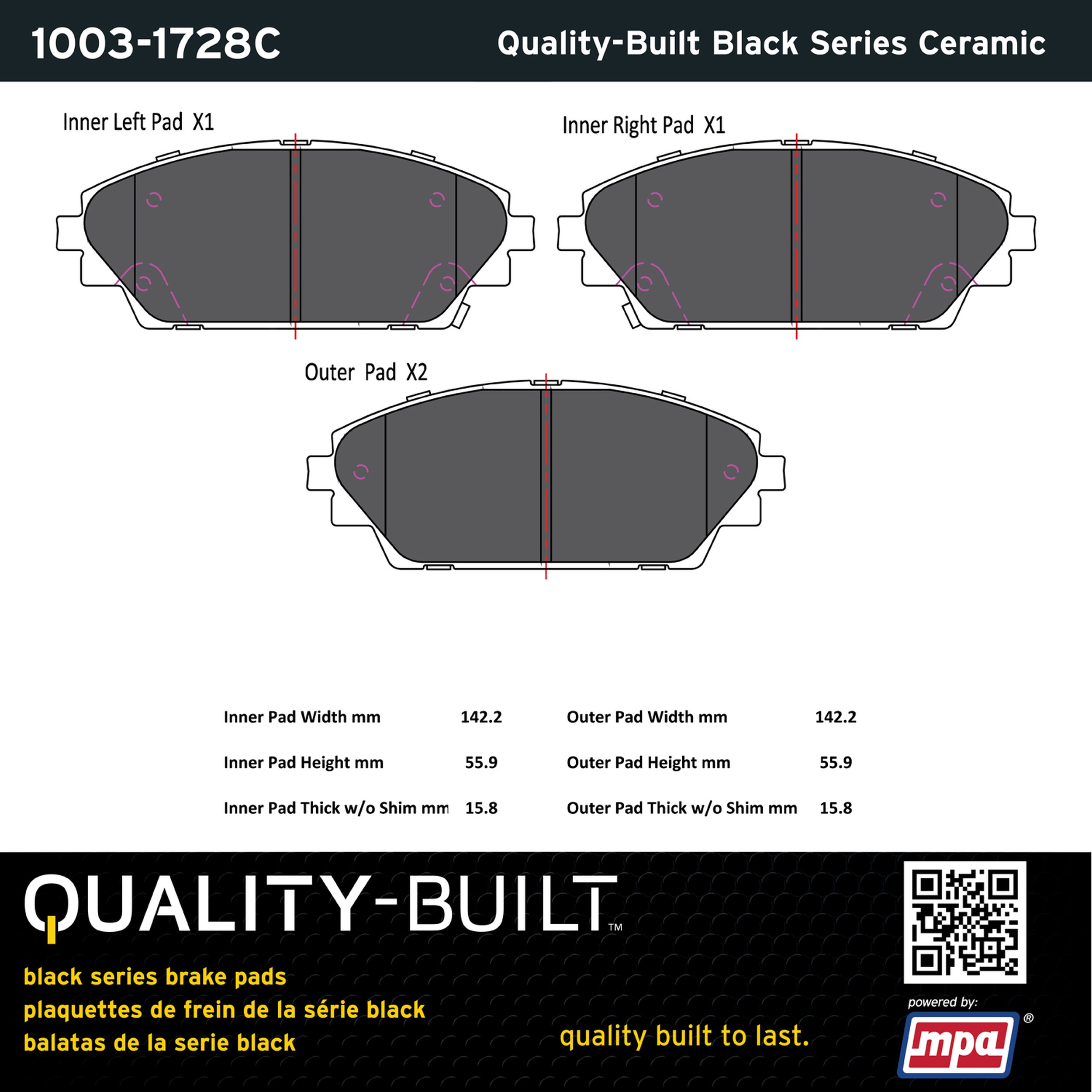 - Quality-Built Black Series Brake Pads are the ultimate in brake pad performance, delivering smooth, reliable stopping with zero noise and low dust. Application-specific friction formulas take the guesswork out of pad selection while providing even, predictable pedal feel and fade-free stopping power across a wide thermal range. Black Series friction compounds are engineered for optimized brake system performance and improved stopping power.
