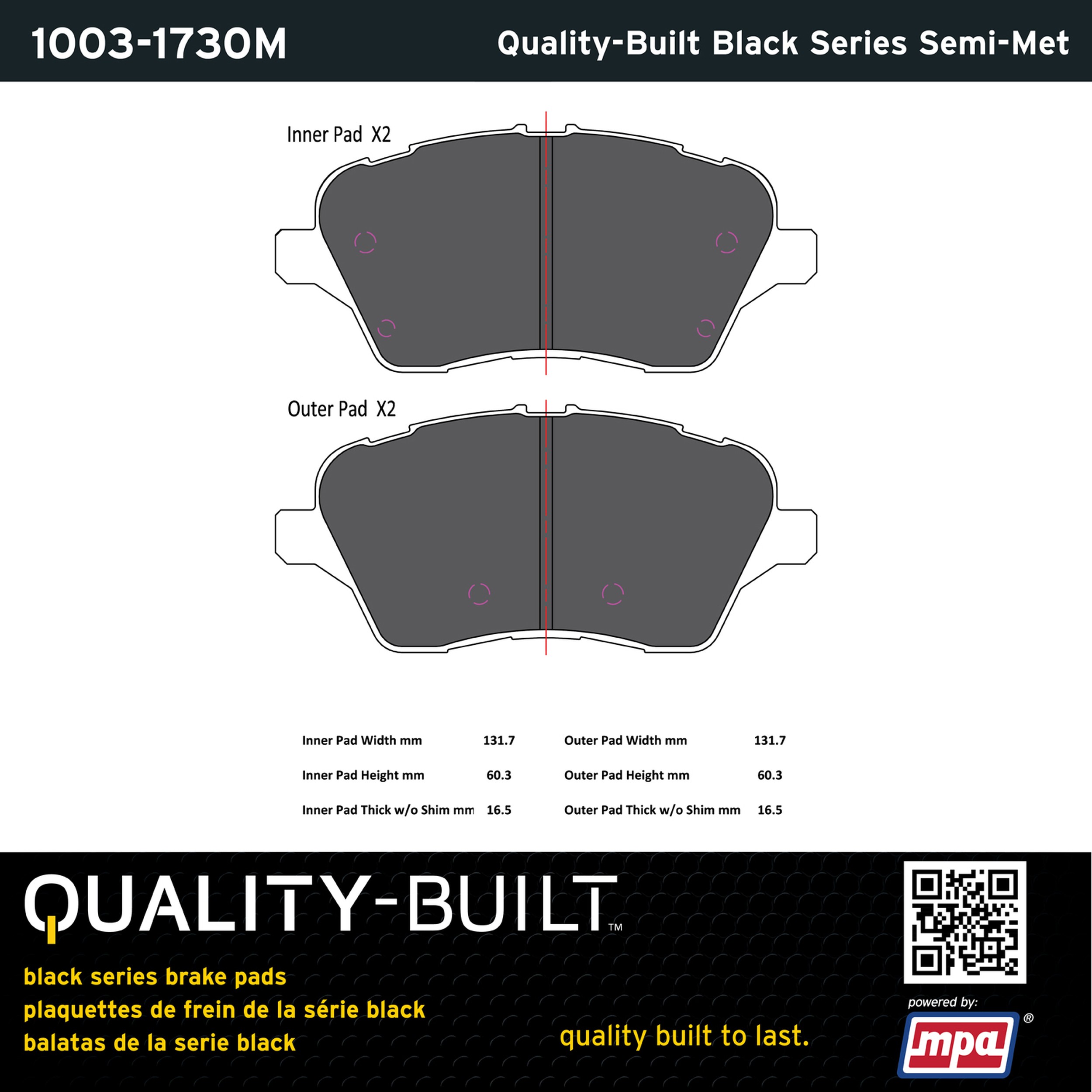 - Quality-Built Black Series Brake Pads are the ultimate in brake pad performance, delivering smooth, reliable stopping with zero noise and low dust. Application-specific friction formulas take the guesswork out of pad selection while providing even, predictable pedal feel and fade-free stopping power across a wide thermal range. Black Series friction compounds are engineered for optimized brake system performance and improved stopping power.