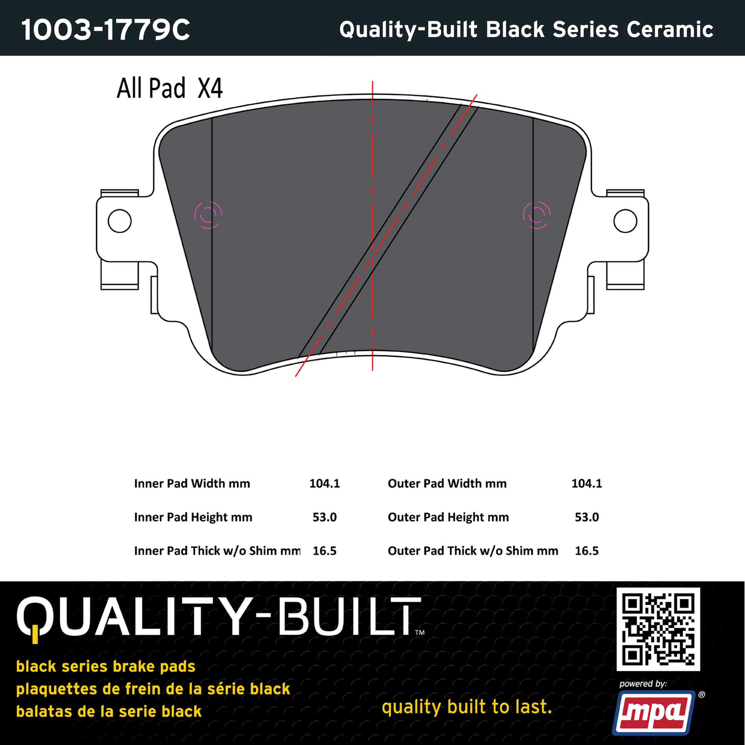 - Quality-Built Black Series Brake Pads are the ultimate in brake pad performance, delivering smooth, reliable stopping with zero noise and low dust. Application-specific friction formulas take the guesswork out of pad selection while providing even, predictable pedal feel and fade-free stopping power across a wide thermal range. Black Series friction compounds are engineered for optimized brake system performance and improved stopping power.