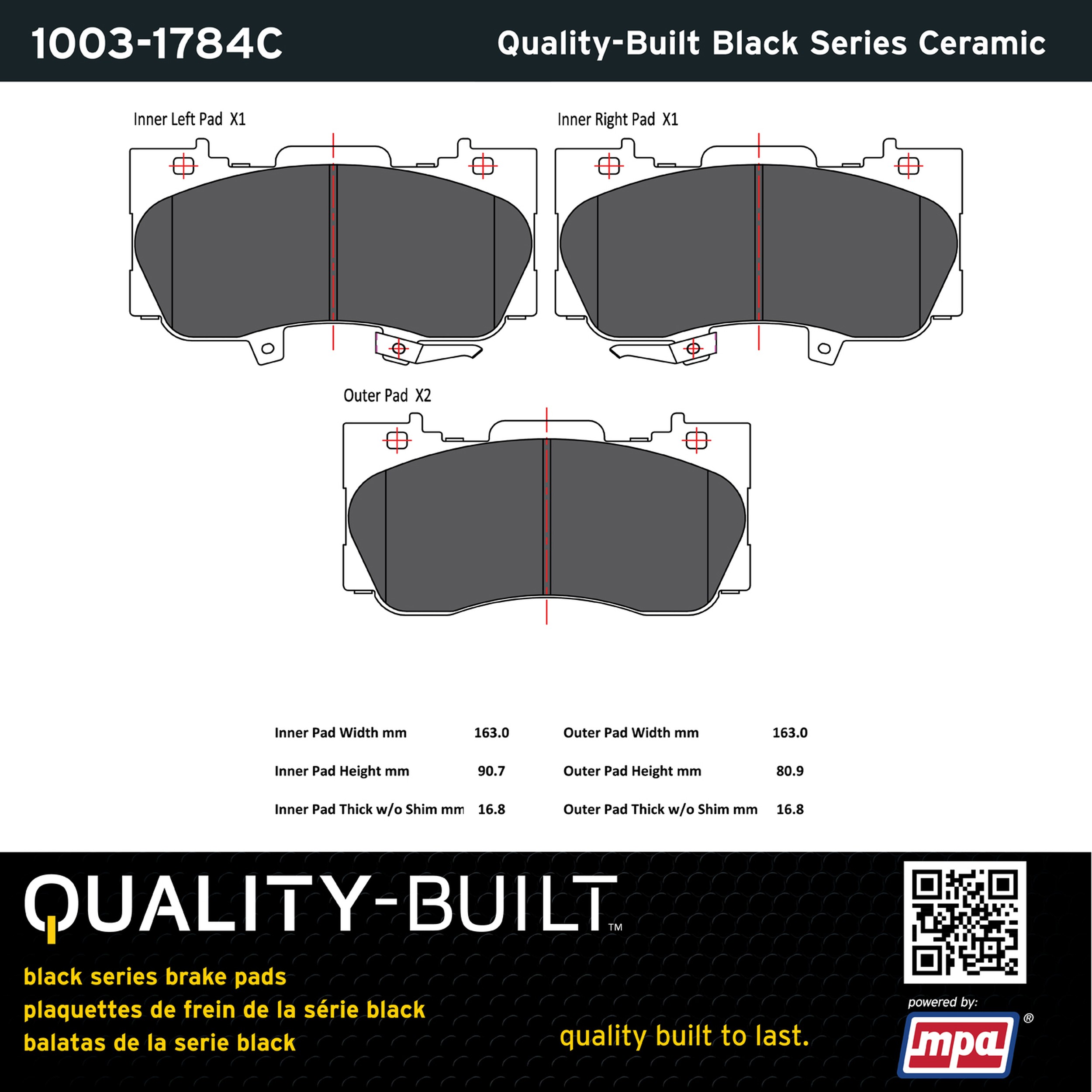 - Quality-Built Black Series Brake Pads are the ultimate in brake pad performance, delivering smooth, reliable stopping with zero noise and low dust. Application-specific friction formulas take the guesswork out of pad selection while providing even, predictable pedal feel and fade-free stopping power across a wide thermal range. Black Series friction compounds are engineered for optimized brake system performance and improved stopping power.