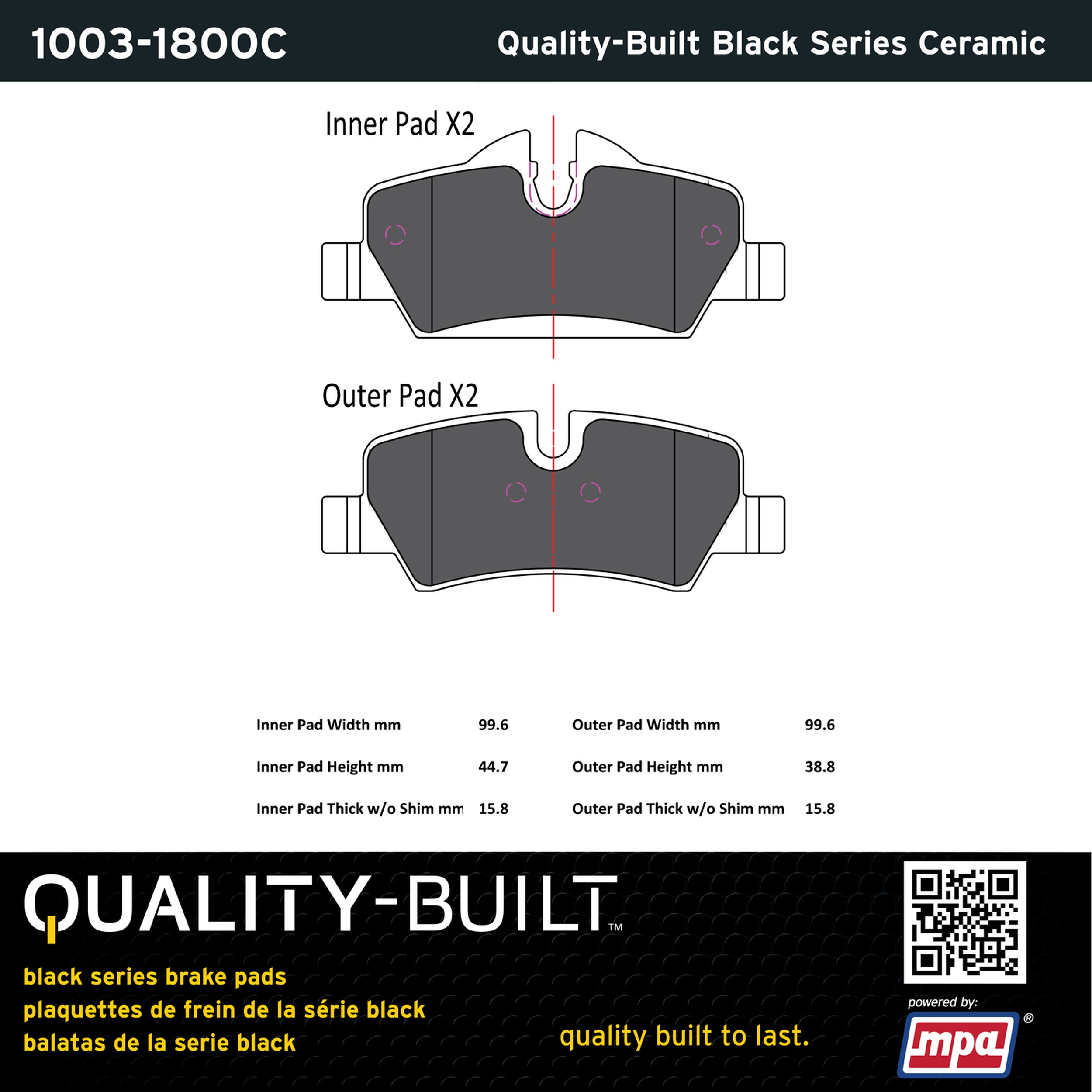 - Quality-Built Black Series Brake Pads are the ultimate in brake pad performance, delivering smooth, reliable stopping with zero noise and low dust. Application-specific friction formulas take the guesswork out of pad selection while providing even, predictable pedal feel and fade-free stopping power across a wide thermal range. Black Series friction compounds are engineered for optimized brake system performance and improved stopping power.