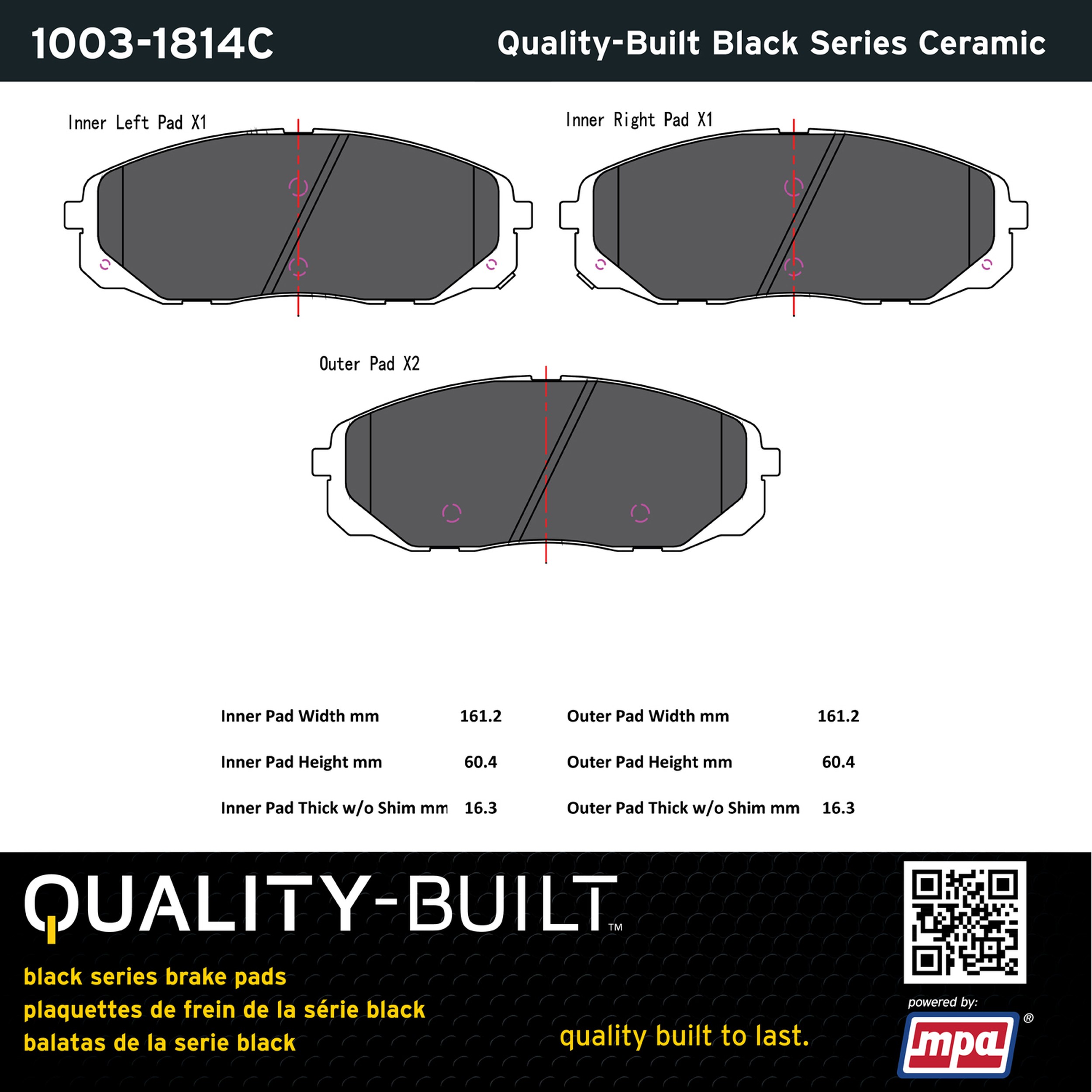 - Quality-Built Black Series Brake Pads are the ultimate in brake pad performance, delivering smooth, reliable stopping with zero noise and low dust. Application-specific friction formulas take the guesswork out of pad selection while providing even, predictable pedal feel and fade-free stopping power across a wide thermal range. Black Series friction compounds are engineered for optimized brake system performance and improved stopping power.