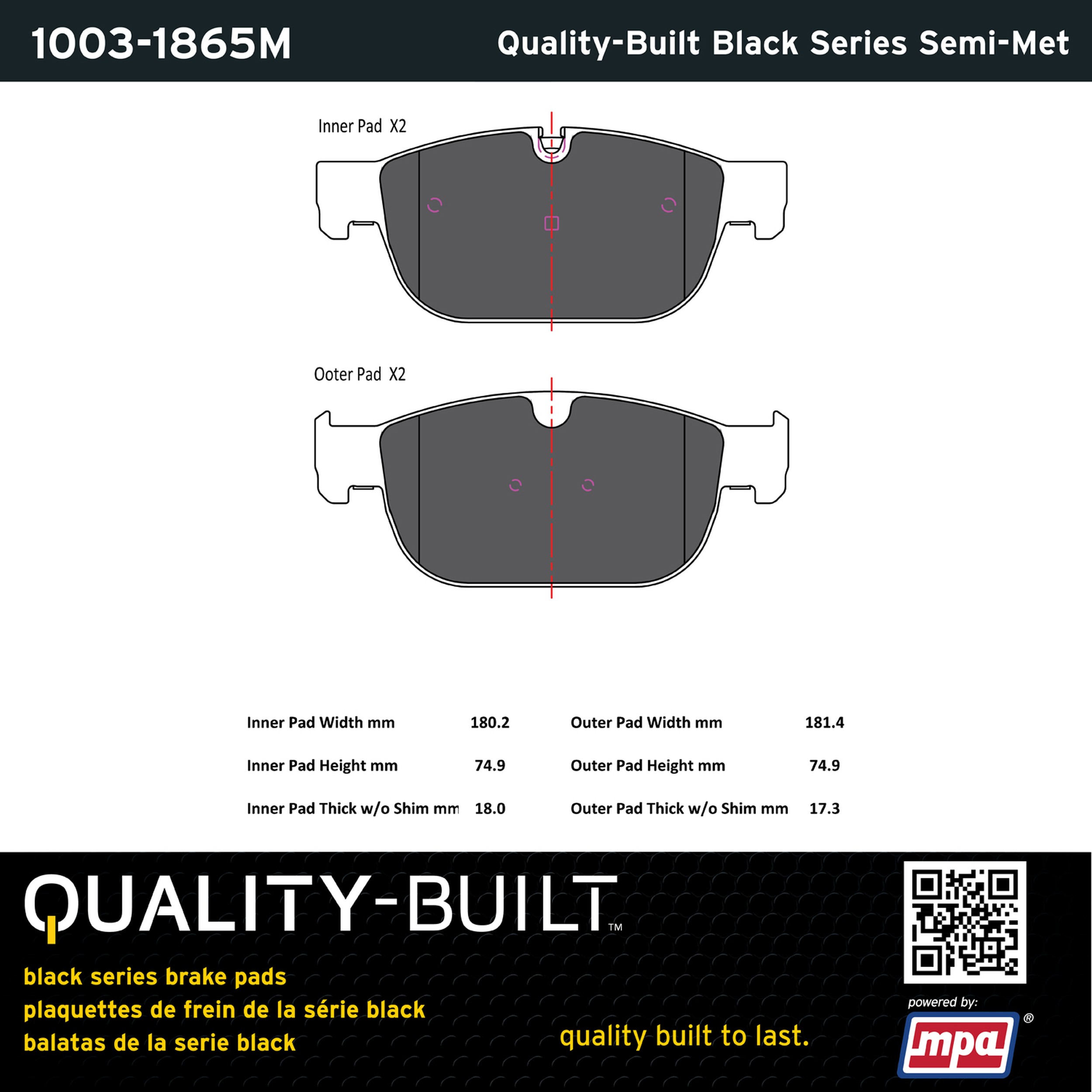 - Quality-Built Black Series Semi-Metallic Brake Pads