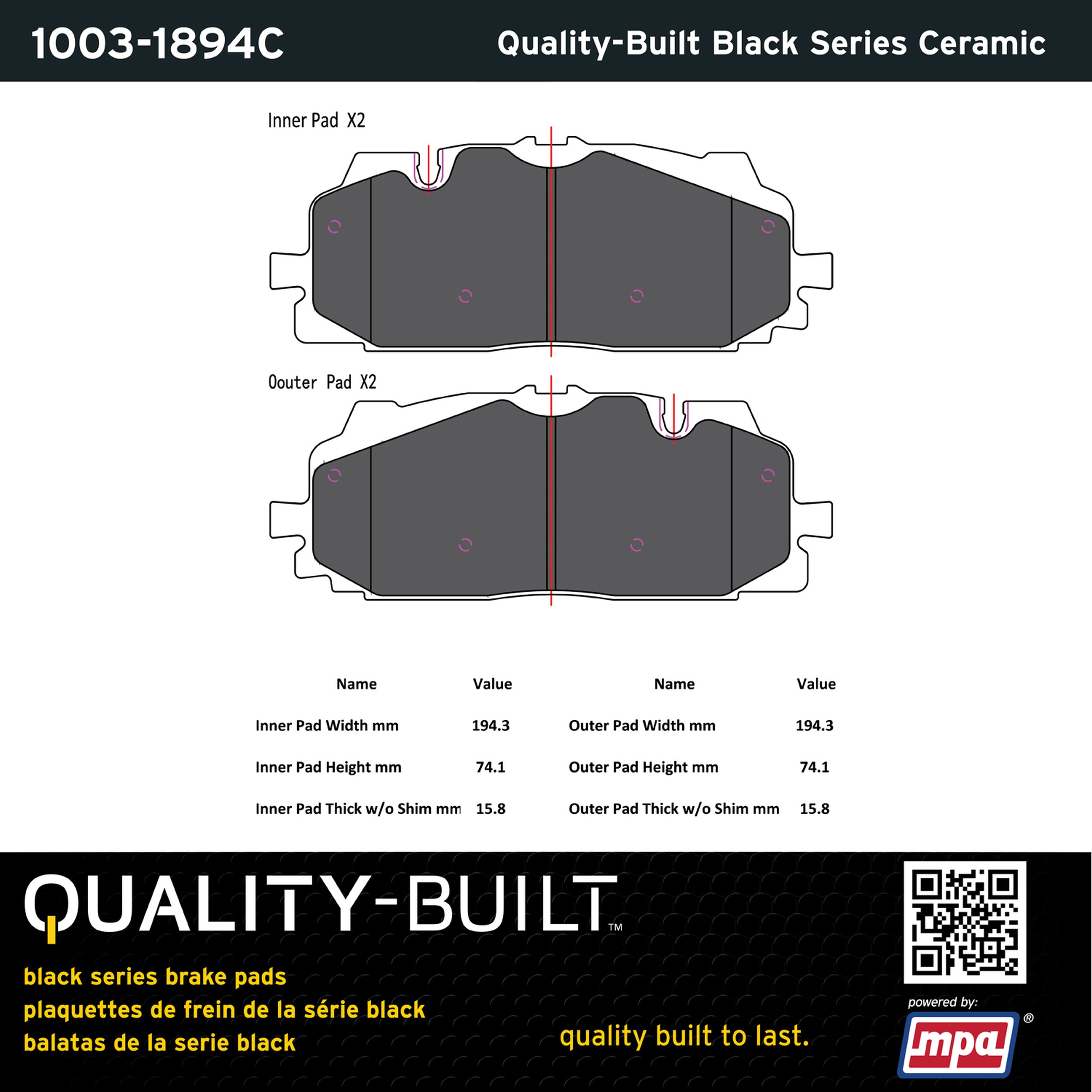 - Quality-Built Black Series Brake Pads are the ultimate in brake pad performance, delivering smooth, reliable stopping with zero noise and low dust. Application-specific friction formulas take the guesswork out of pad selection while providing even, predictable pedal feel and fade-free stopping power across a wide thermal range. Black Series friction compounds are engineered for optimized brake system performance and improved stopping power.