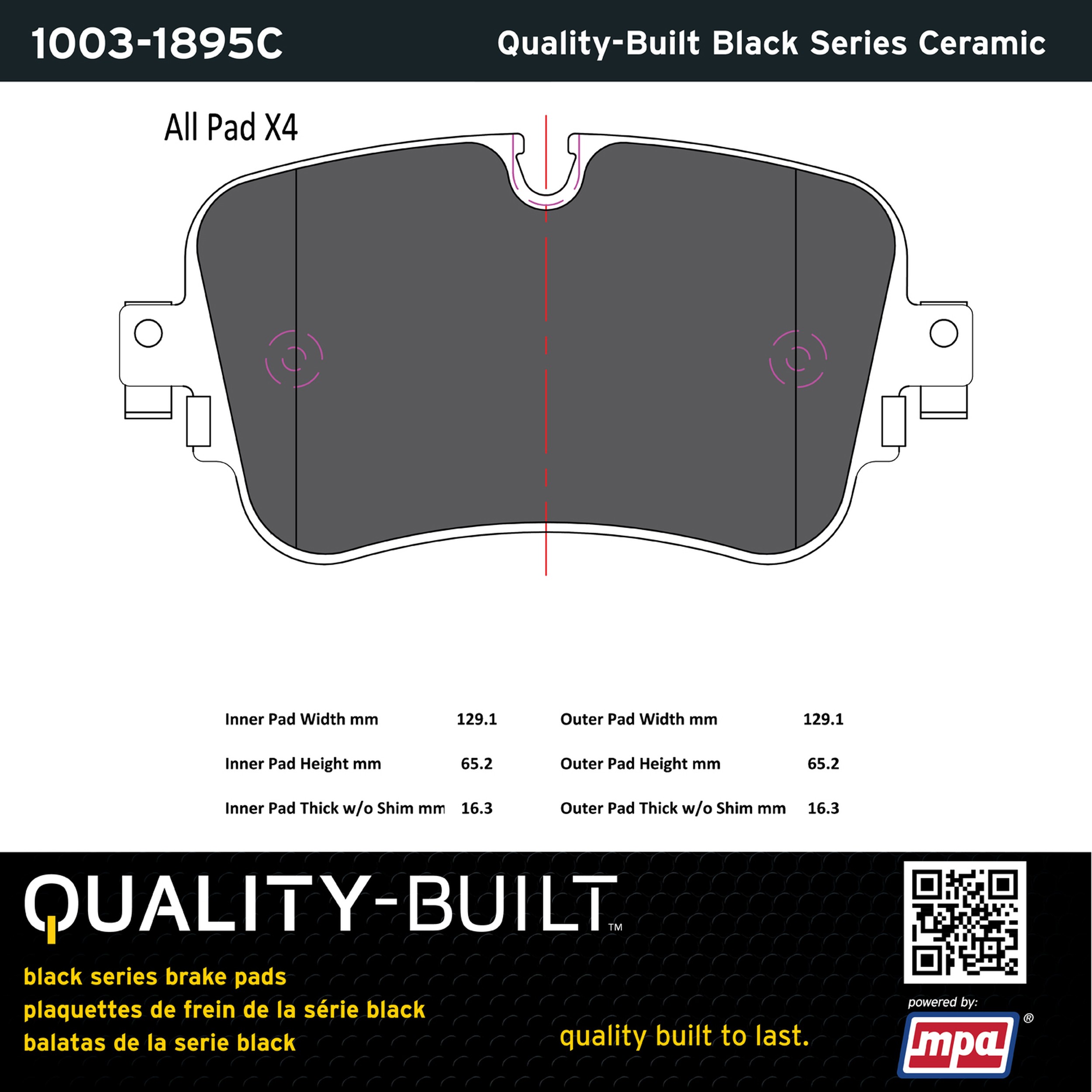 - Quality-Built Black Series Brake Pads are the ultimate in brake pad performance, delivering smooth, reliable stopping with zero noise and low dust. Application-specific friction formulas take the guesswork out of pad selection while providing even, predictable pedal feel and fade-free stopping power across a wide thermal range. Black Series friction compounds are engineered for optimized brake system performance and improved stopping power.