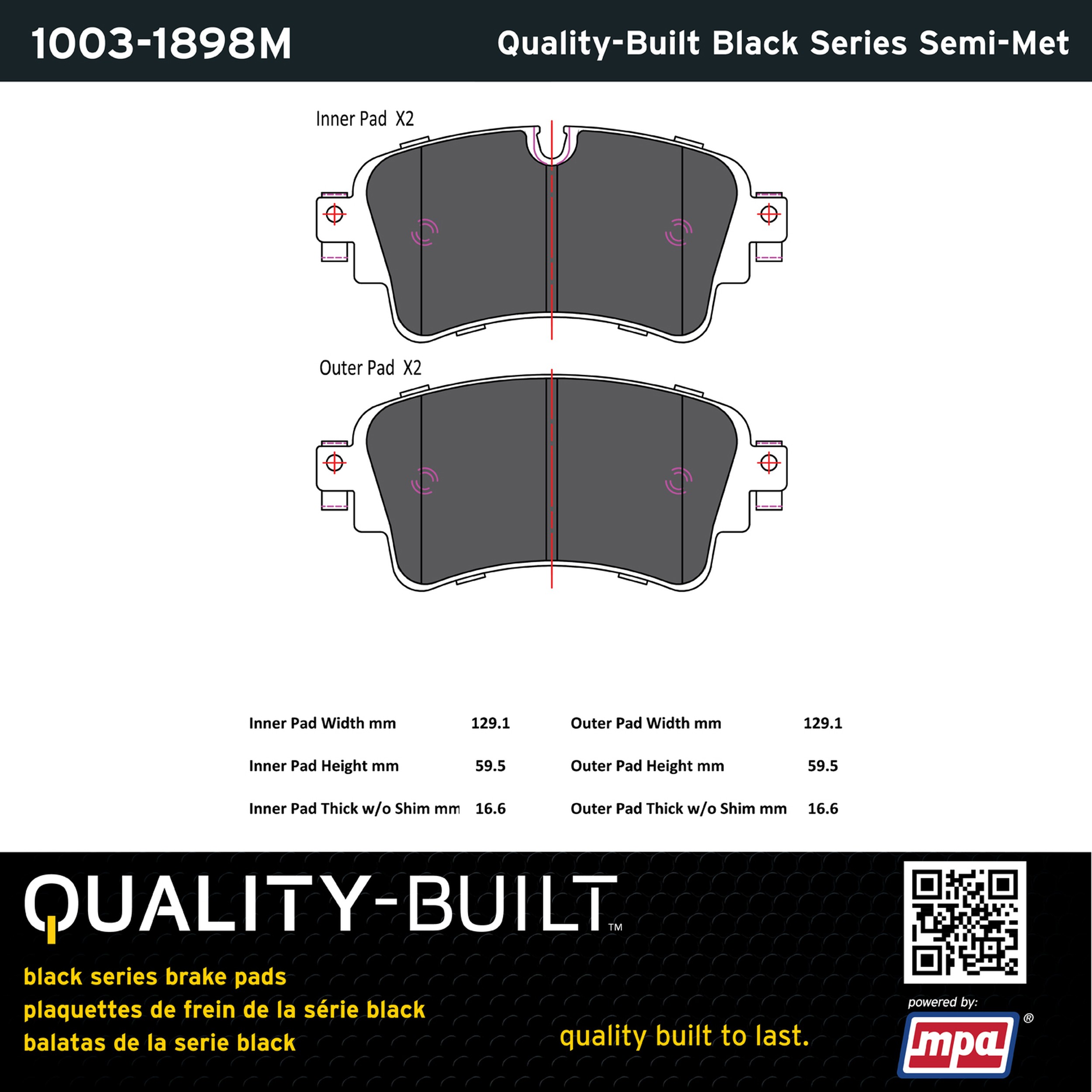 • Quality-Built Black Series Semi-Metallic Brake Pads