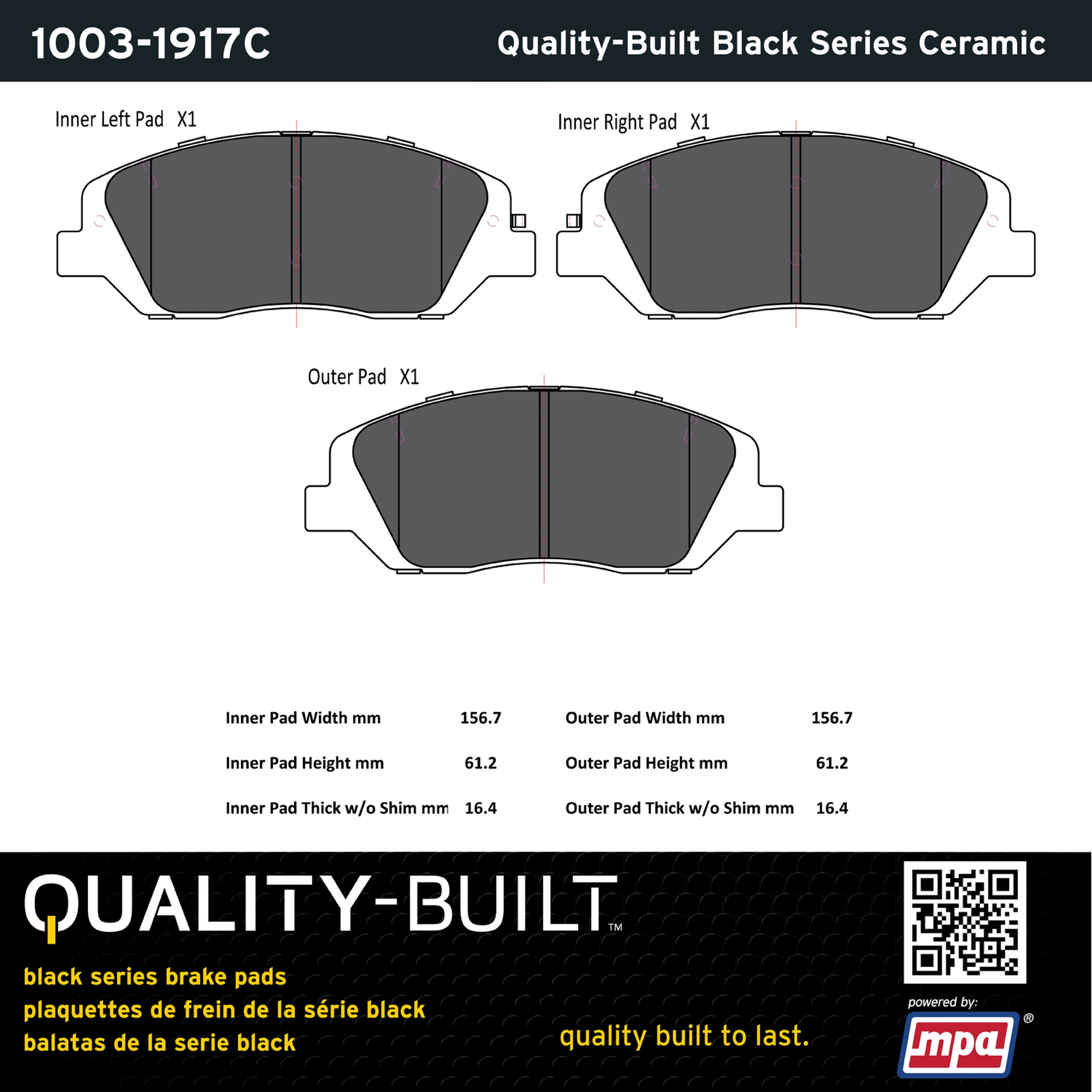 - Quality-Built Black Series Ceramic Brake Pads w/ Hardware