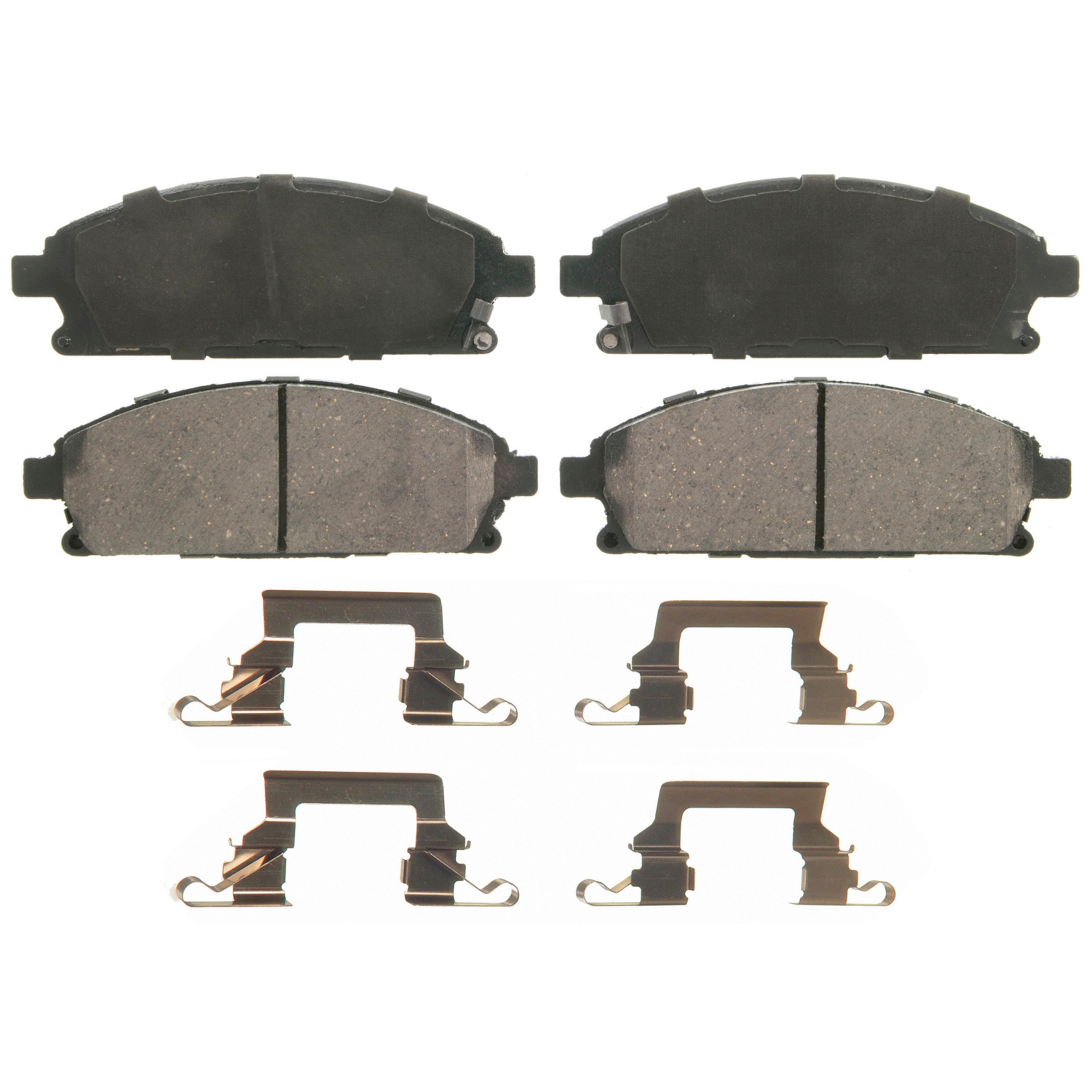 2003-2006 Acura MDX (Front) (Qualifier: OE Equipped with Ceramic Pads, without holes in Pad for hardware clips, Includes Pad Installation Hardware); 2002-2009 Nissan X-Trail (Front) (Qualifier: OE Equipped with Ceramic Pads, without holes in Pad for hardware clips, Includes Pad Installation Hardware); 1996-2004 Nissan Pathfinder (Front) (Qualifier: OE Equipped with Ceramic Pads, without holes in Pad for hardware clips, Includes Pad Installation Hardware); 2017 Nissan Quest (Front) (Qualifier: OE Equipped with Ceramic Pads, without holes in Pad for hardware clips, Includes Pad Installation Hardware); 1997-1999 INFINITI Q45 (Front) (Qualifier: OE Equipped with Ceramic Pads, without holes in Pad for hardware clips, Includes Pad Installation Hardware); 1997-2003 INFINITI QX4 (Front) (Qualifier: OE Equipped with Ceramic Pads, without holes in Pad for hardware clips, Includes Pad Installation Hardware)