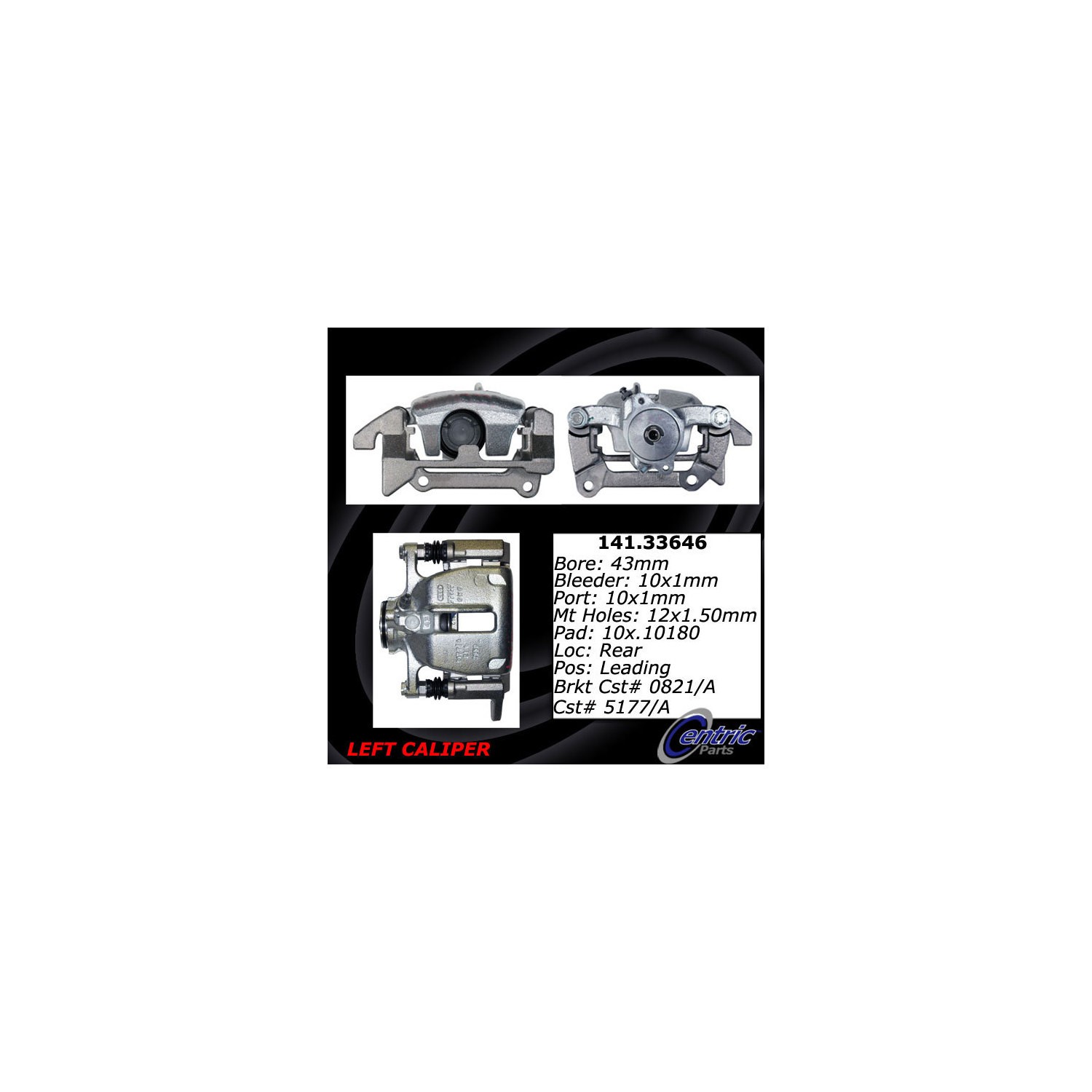 - Brake calipers are critical parts of the brake assembly. This Centric caliper is remanufactured to ensure predictable and reliable performance while providing long service life. To achieve like new condition and protection from rust, the part is tumble blasted then treated with an anti-corrosion finish. The caliper is 100% pressure tested and inspected to guarantee proper operation and fitment. Hardware and brackets are included, where applicable, to facilitate an easy installation. Founded in Southern California in 2000, Centric® achieved recognition for its aftermarket and brake components systems worldwide. Today the company is a leading manufacturer and supplier of brakes, big brake kits, high performance brakes, calipers, discs, rotors, pads, racing brakes, fluid, aftermarket brakes, armored vehicle brake upgrades, big brake kits (BBKs), OEM brake systems for everyday cars, heavy-duty vehicles, and high performance cars. All Centric products are known under the StopTech, C-Tek, Centric, and PosiQuiet labels and backed by quality research and development.