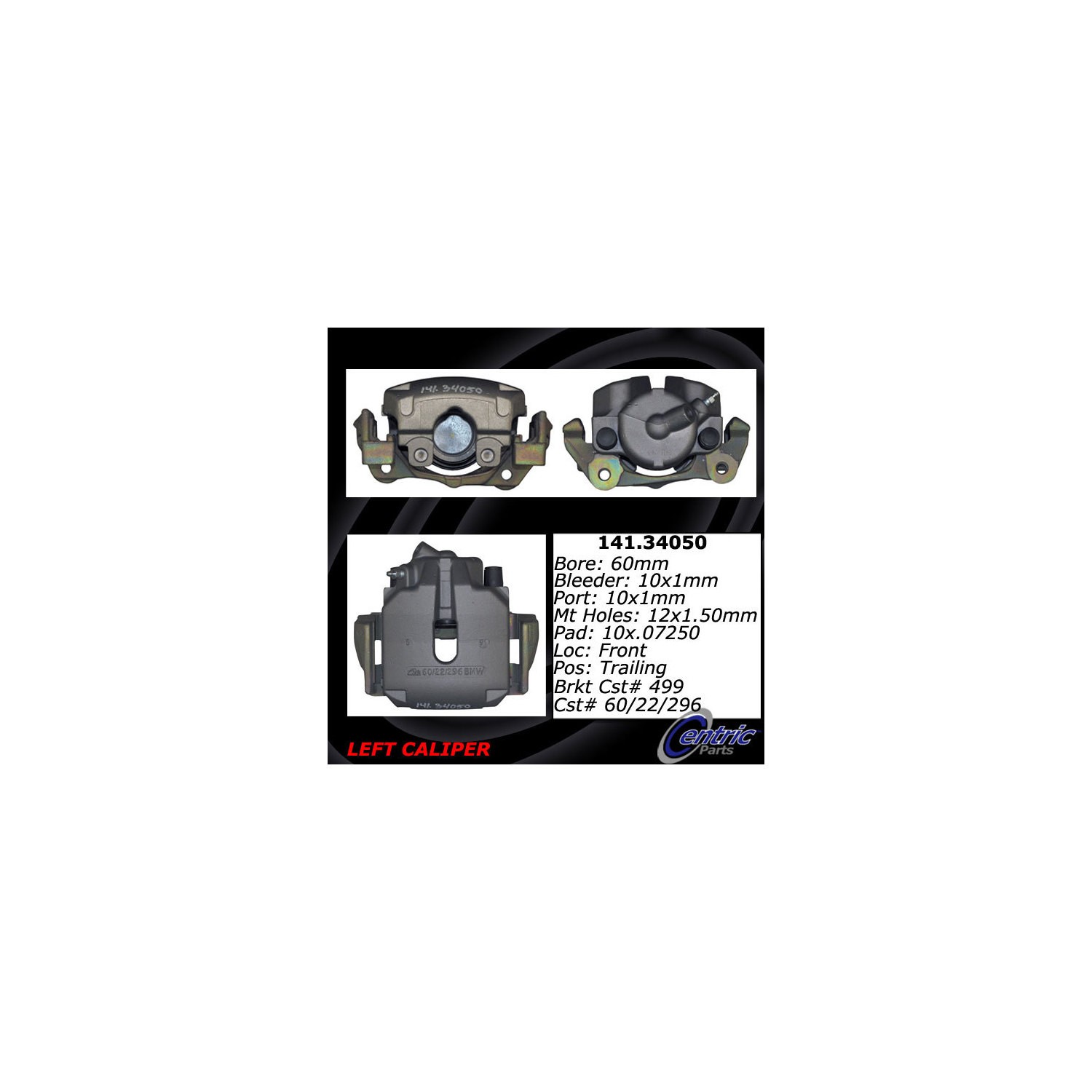 - Brake calipers are critical parts of the brake assembly. This Centric caliper is remanufactured to ensure predictable and reliable performance while providing long service life. To achieve like new condition and protection from rust, the part is tumble blasted then treated with an anti-corrosion finish. The caliper is 100% pressure tested and inspected to guarantee proper operation and fitment. Hardware and brackets are included, where applicable, to facilitate an easy installation. Founded in Southern California in 2000, Centric® achieved recognition for its aftermarket and brake components systems worldwide. Today the company is a leading manufacturer and supplier of brakes, big brake kits, high performance brakes, calipers, discs, rotors, pads, racing brakes, fluid, aftermarket brakes, armored vehicle brake upgrades, big brake kits (BBKs), OEM brake systems for everyday cars, heavy-duty vehicles, and high performance cars. All Centric products are known under the StopTech, C-Tek, Centric, and PosiQuiet labels and backed by quality research and development.
