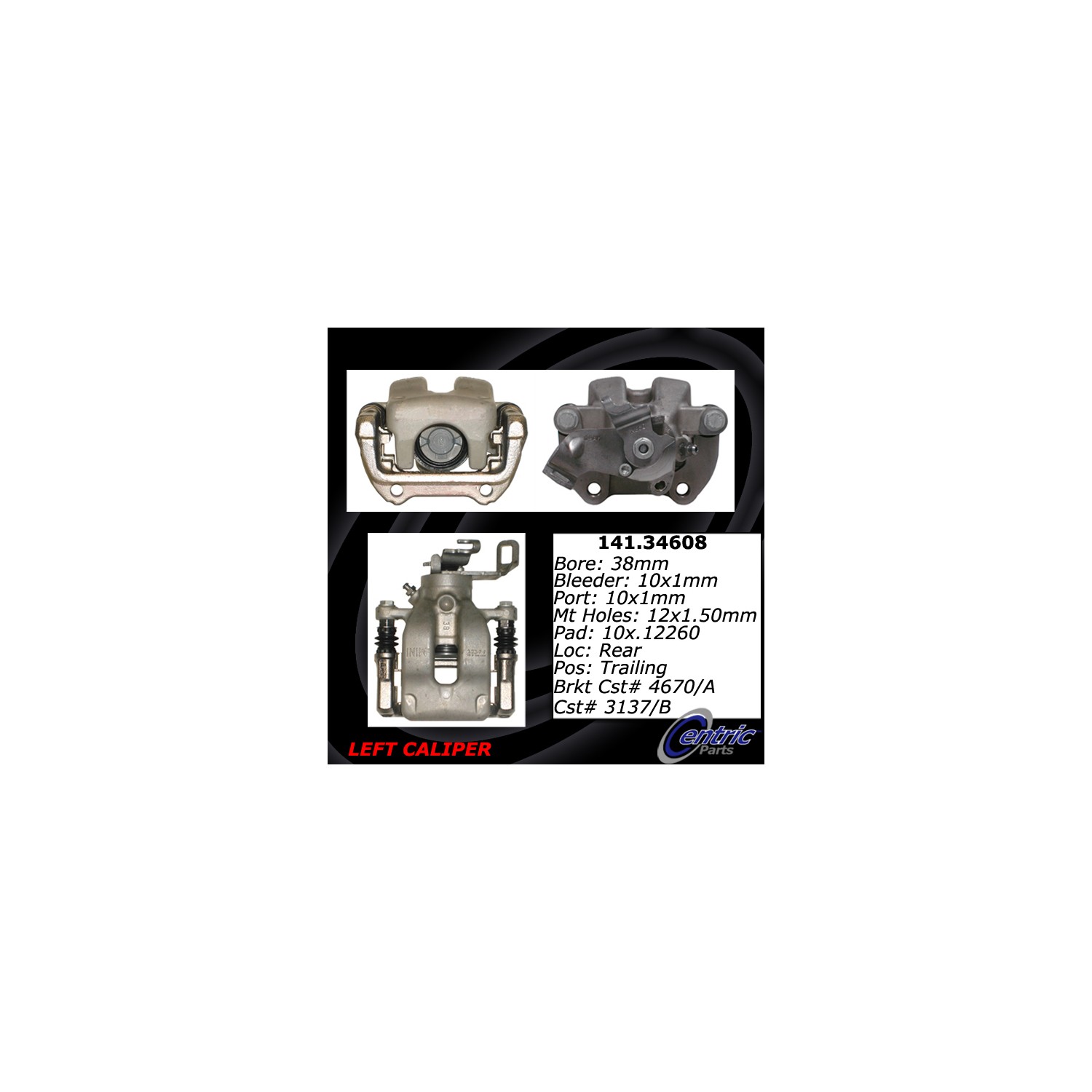 - Brake calipers are critical parts of the brake assembly. This Centric caliper is remanufactured to ensure predictable and reliable performance while providing long service life. To achieve like new condition and protection from rust, the part is tumble blasted then treated with an anti-corrosion finish. The caliper is 100% pressure tested and inspected to guarantee proper operation and fitment. Hardware and brackets are included, where applicable, to facilitate an easy installation. Founded in Southern California in 2000, Centric® achieved recognition for its aftermarket and brake components systems worldwide. Today the company is a leading manufacturer and supplier of brakes, big brake kits, high performance brakes, calipers, discs, rotors, pads, racing brakes, fluid, aftermarket brakes, armored vehicle brake upgrades, big brake kits (BBKs), OEM brake systems for everyday cars, heavy-duty vehicles, and high performance cars. All Centric products are known under the StopTech, C-Tek, Centric, and PosiQuiet labels and backed by quality research and development.
