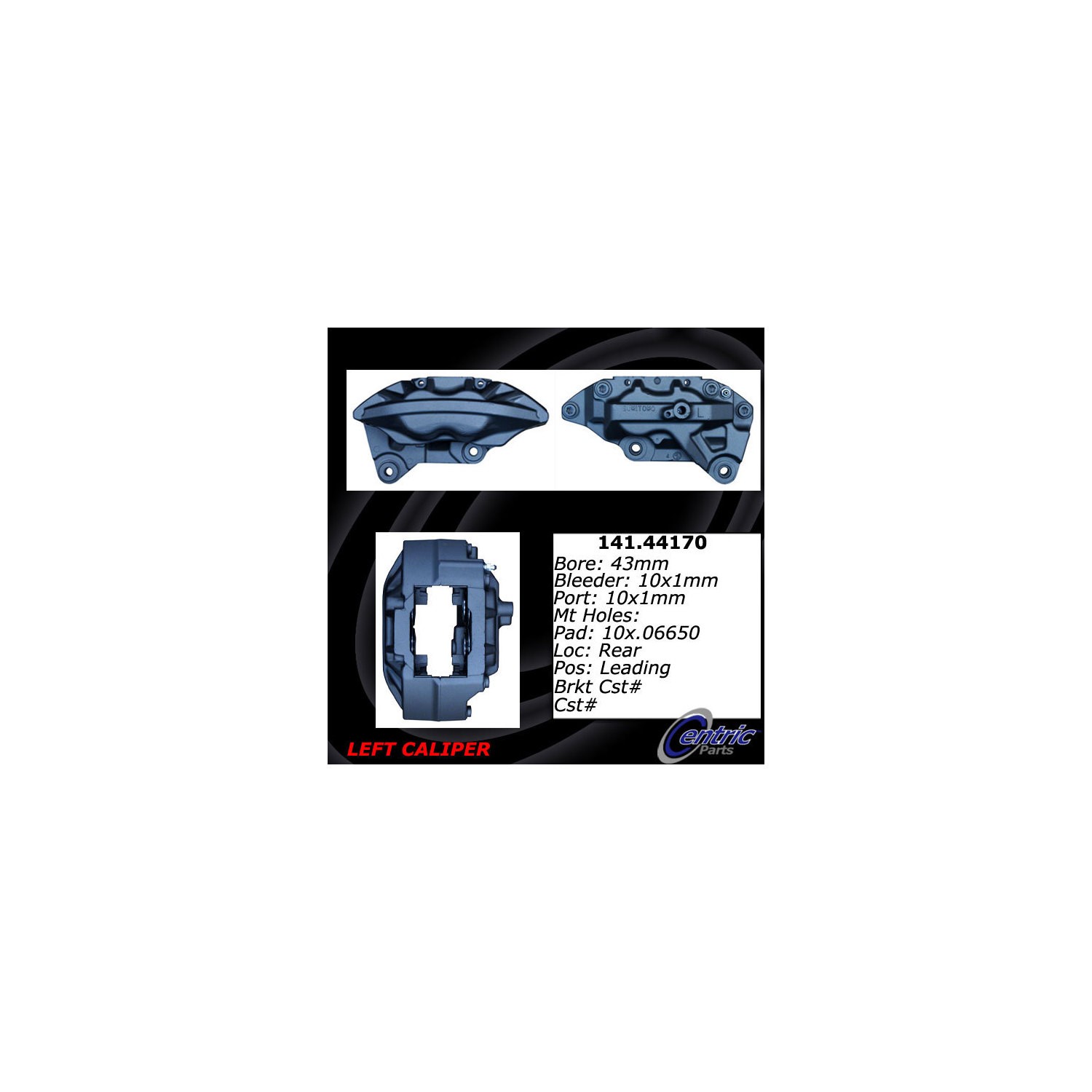 - Brake calipers are critical parts of the brake assembly. This Centric caliper is remanufactured to ensure predictable and reliable performance while providing long service life. To achieve like new condition and protection from rust, the part is tumble blasted then treated with an anti-corrosion finish. The caliper is 100% pressure tested and inspected to guarantee proper operation and fitment. Hardware and brackets are included, where applicable, to facilitate an easy installation. Founded in Southern California in 2000, Centric® achieved recognition for its aftermarket and brake components systems worldwide. Today the company is a leading manufacturer and supplier of brakes, big brake kits, high performance brakes, calipers, discs, rotors, pads, racing brakes, fluid, aftermarket brakes, armored vehicle brake upgrades, big brake kits (BBKs), OEM brake systems for everyday cars, heavy-duty vehicles, and high performance cars. All Centric products are known under the StopTech, C-Tek, Centric, and PosiQuiet labels and backed by quality research and development.