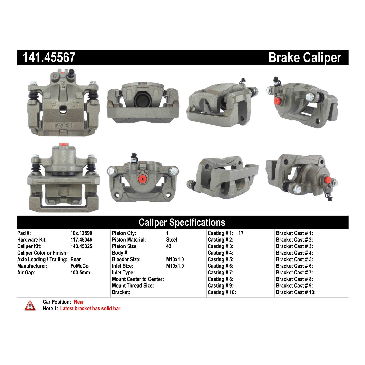 - Remanufactured to meet the most exacting standards for reliable performance; 100% pressure tested & inspected to ensure proper operation & fitment; Treated with anti-corrosion finish; Comes without brake pads; Includes hardware and brackets
