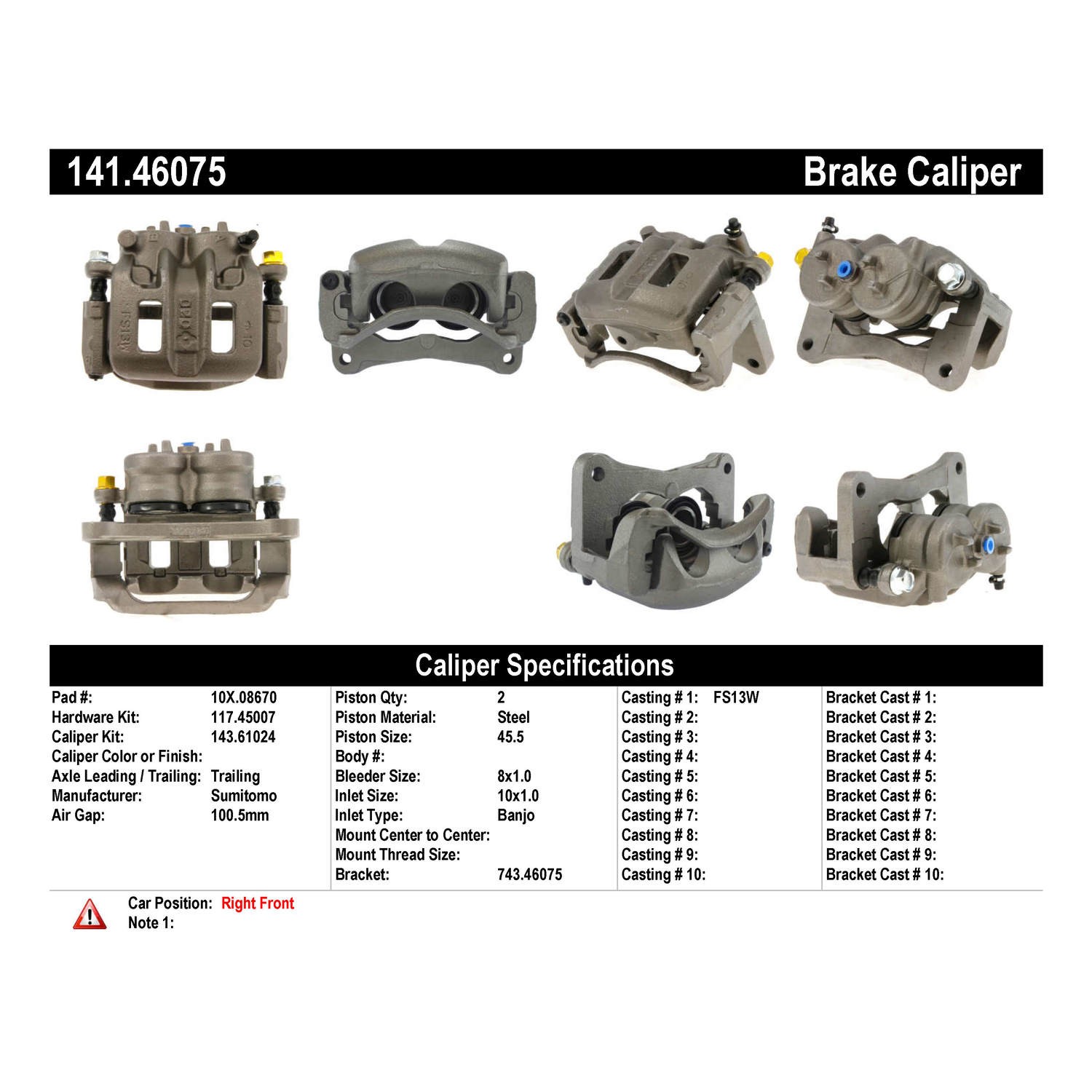 - Remanufactured to meet the most exacting standards for reliable performance; 100% pressure tested & inspected to ensure proper operation & fitment; Treated with anti-corrosion finish; Comes without brake pads; Includes hardware and brackets