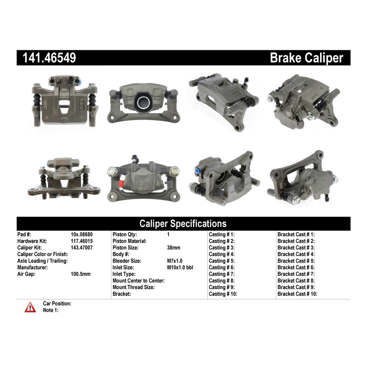 - Remanufactured to meet the most exacting standards for reliable performance; 100% pressure tested & inspected to ensure proper operation & fitment; Treated with anti-corrosion finish; Comes without brake pads; Includes hardware and brackets