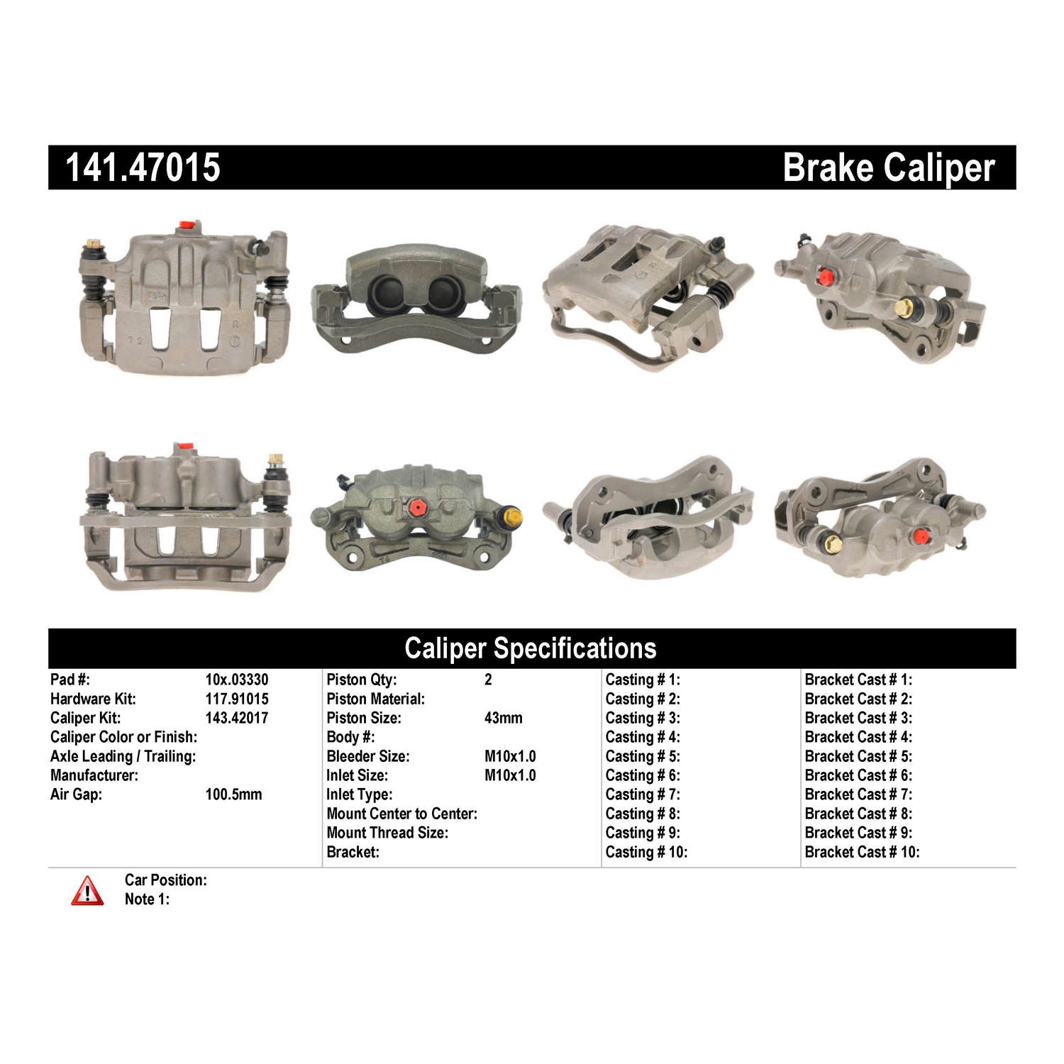 - Remanufactured to meet the most exacting standards for reliable performance; 100% pressure tested & inspected to ensure proper operation & fitment; Treated with anti-corrosion finish; Comes without brake pads; Includes hardware and brackets